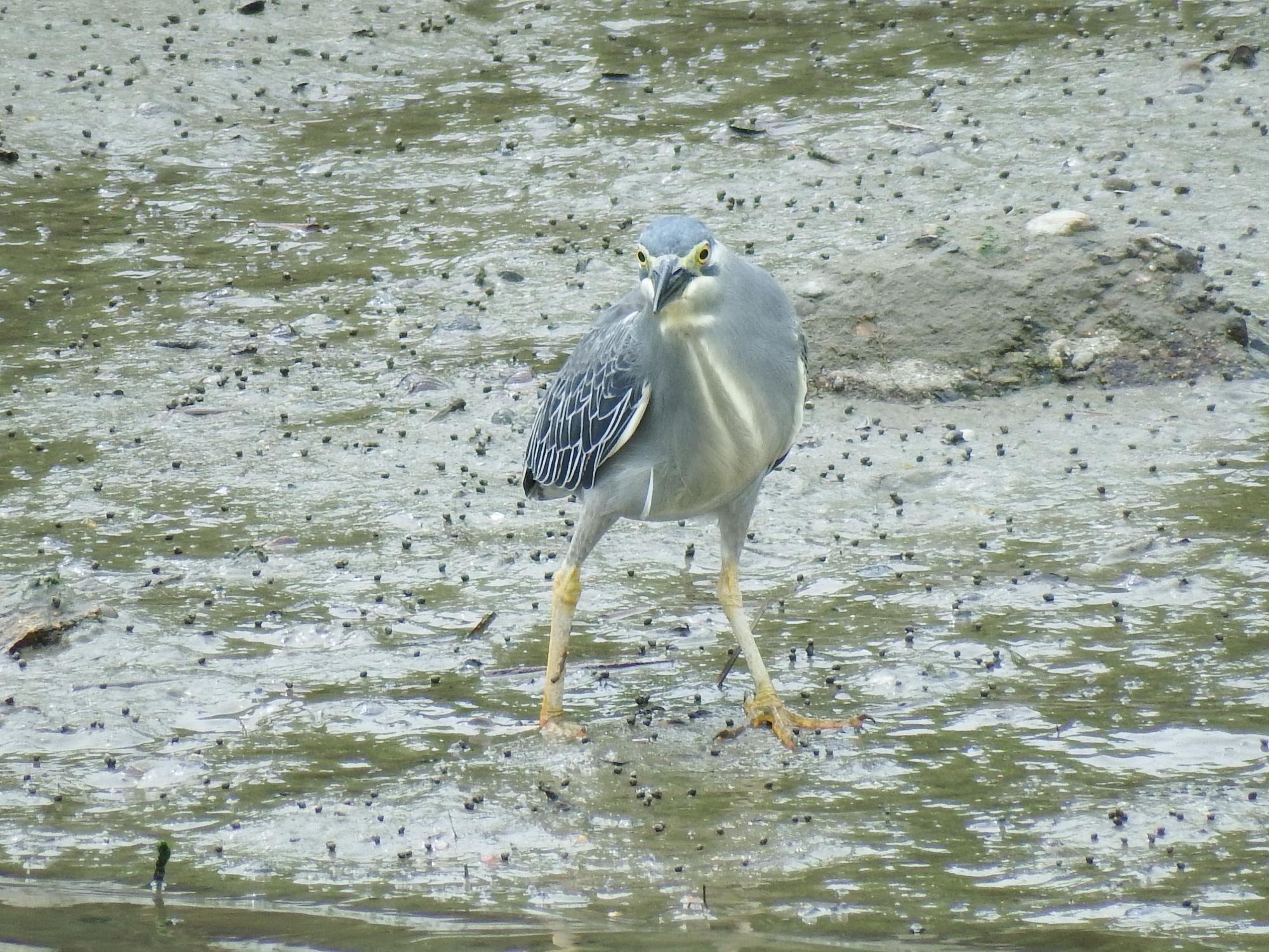 胸の縦の2本線がカッコいい。サギの一種で、漢字では笹五位、ゴイサギ(五位鷺)に似ていることに由来するようですが、ゴイサギより小さく全体的にグレーで、目が黄色いです。ちなみに五位とは平家物語でゴイサギがもらった官位だそうです。
