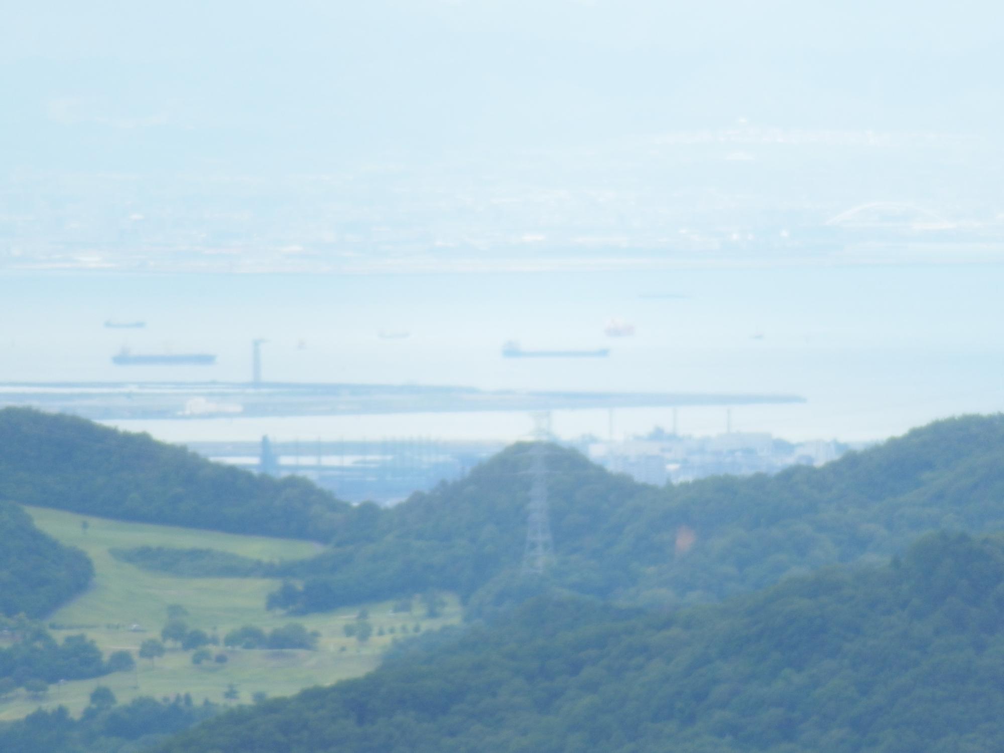 右手に少し移動すると南港、もう少し右手に移動すると大阪湾、対岸は岸和田辺りです。