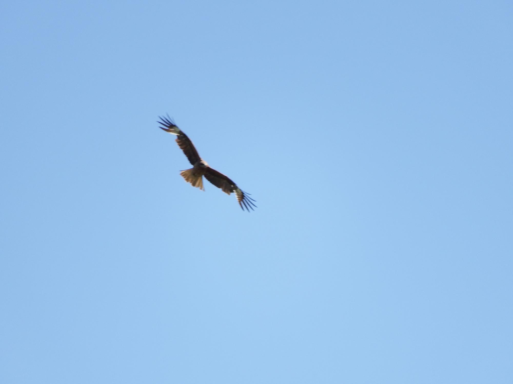 クルマの殆ど通らない広い道路に出てきました。うねる下り坂を行く少年の自転車、空にはトンビ。
