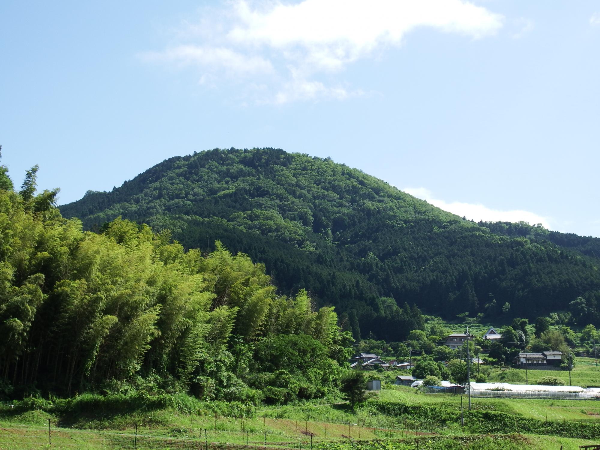 下りてきた三草山を見上げます。秀麗な独立峰です。頂上付近は斜面30度くらいあります。よく登ったな、と思います。