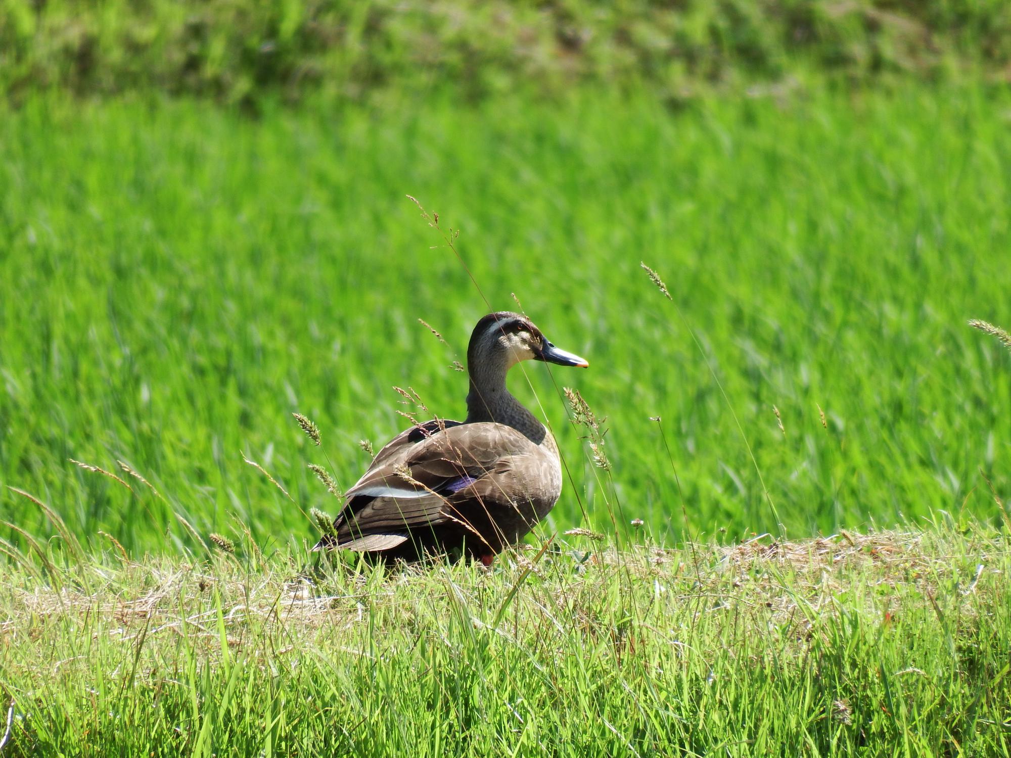 田んぼのカルガモとケリ。ようやく運動会がオシマイのようです。成績発表、優勝は白組、準優勝は赤組…。