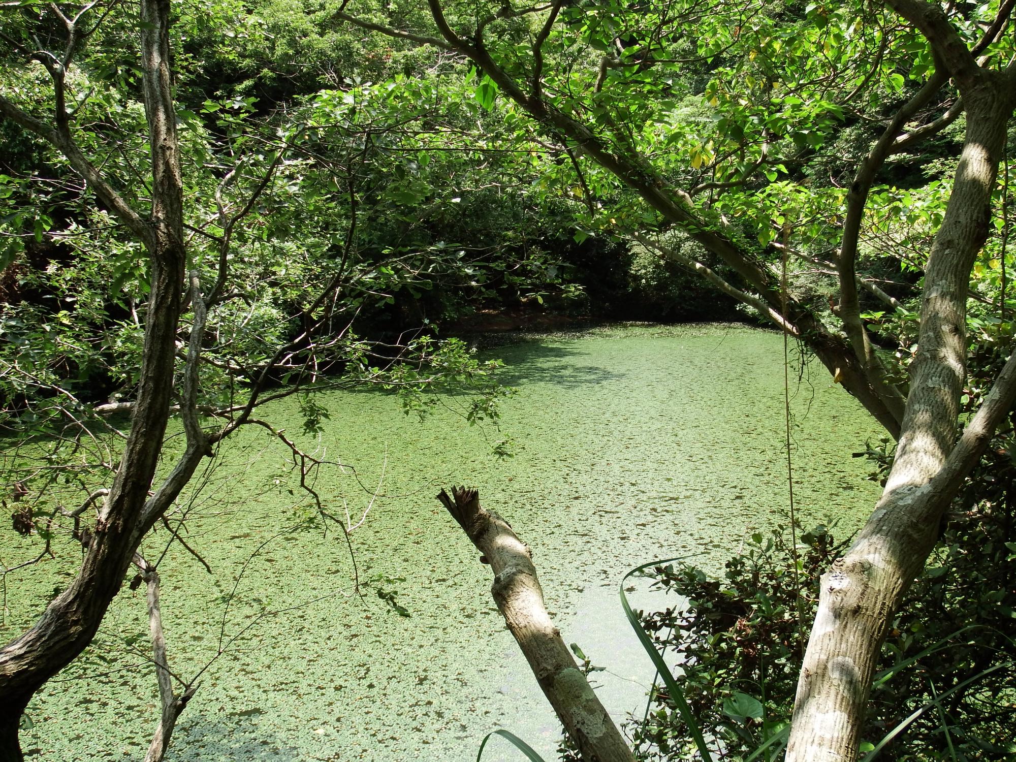色んな小さな仲間たちがやってきそうな古池。