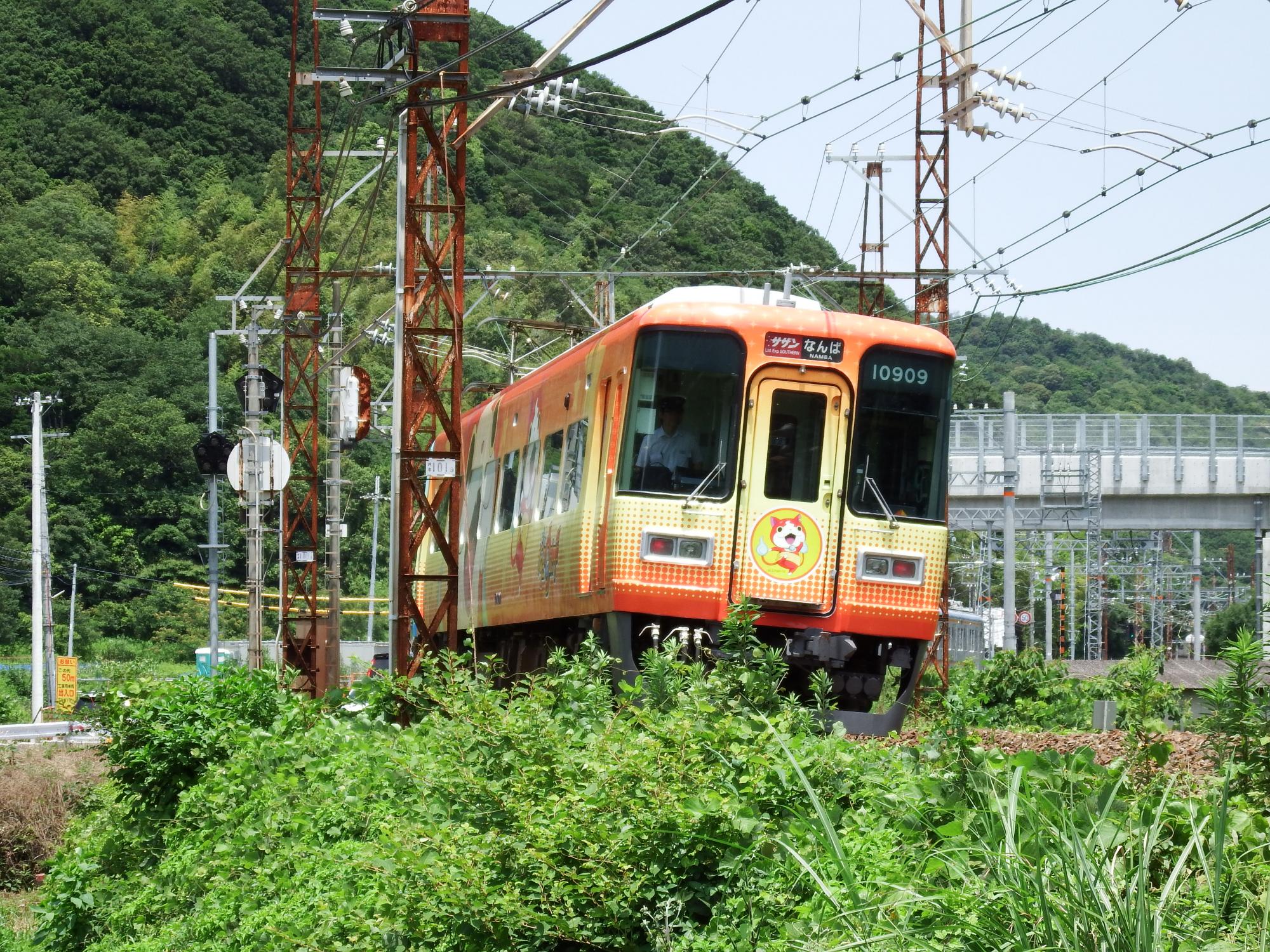 孝子駅に戻ると上りサザンの妖怪ウォッチトレインがやってきました。