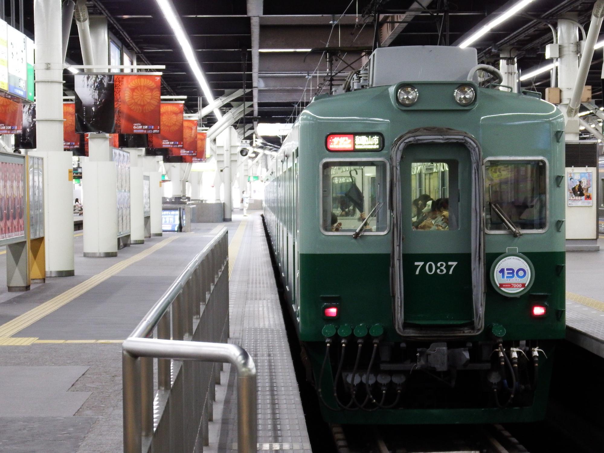 和歌山市到着、パンタグラフは7100系と同じ下枠交差式になってますが、7000系は元々大きな菱型パンタでした。