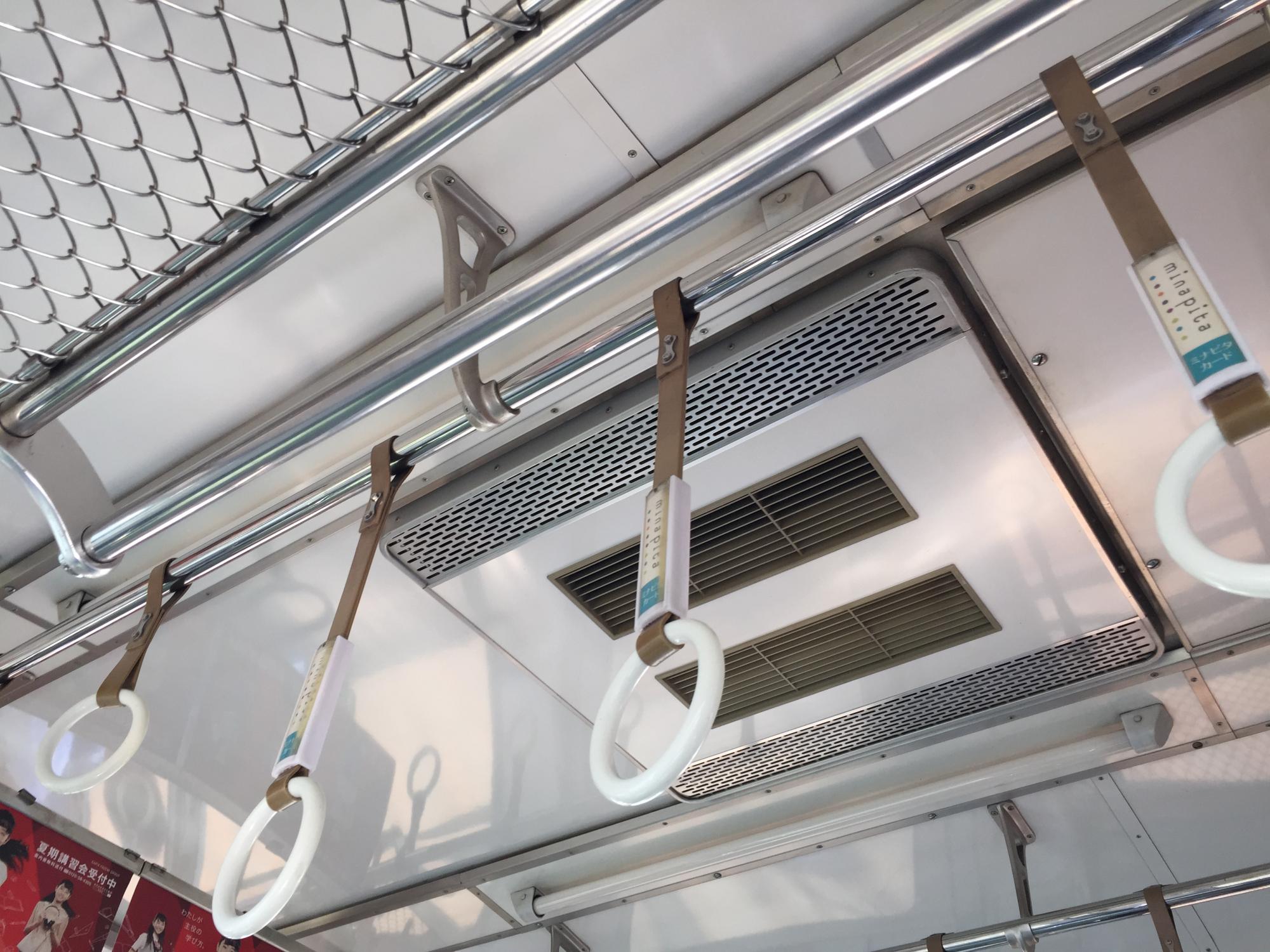 文字通り網棚のままの網棚と分散式クーラーの通風口。南海の冷房化は早く、昭和45年登場の7100系2次車からこの分散式のクーラーが搭載されています。まだ一般家庭にエアコンが普及する前のことです。