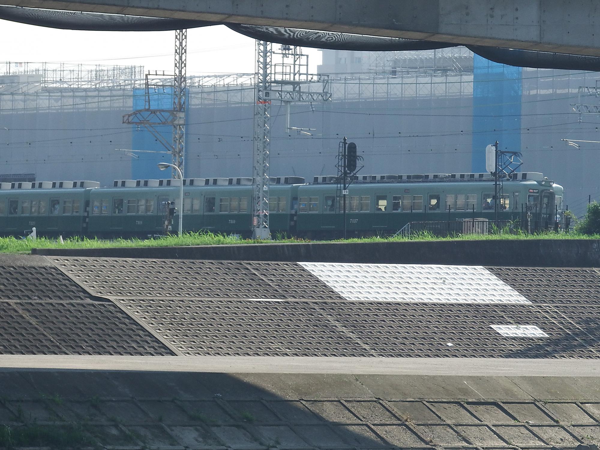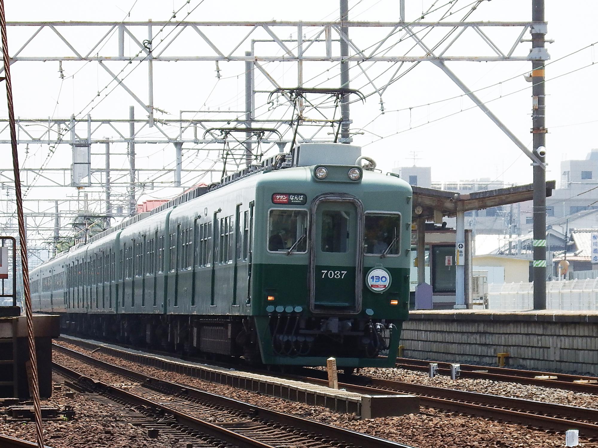 緑の7000系、7037編成の上りサザン38号、逆光で緑色がキレイに出ないです。