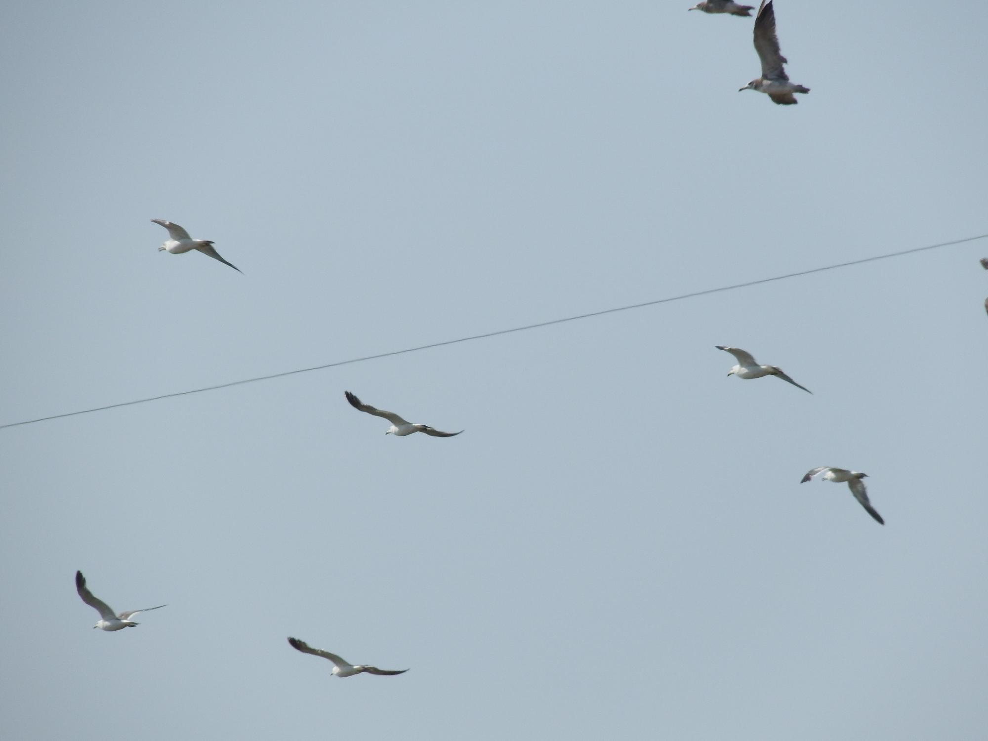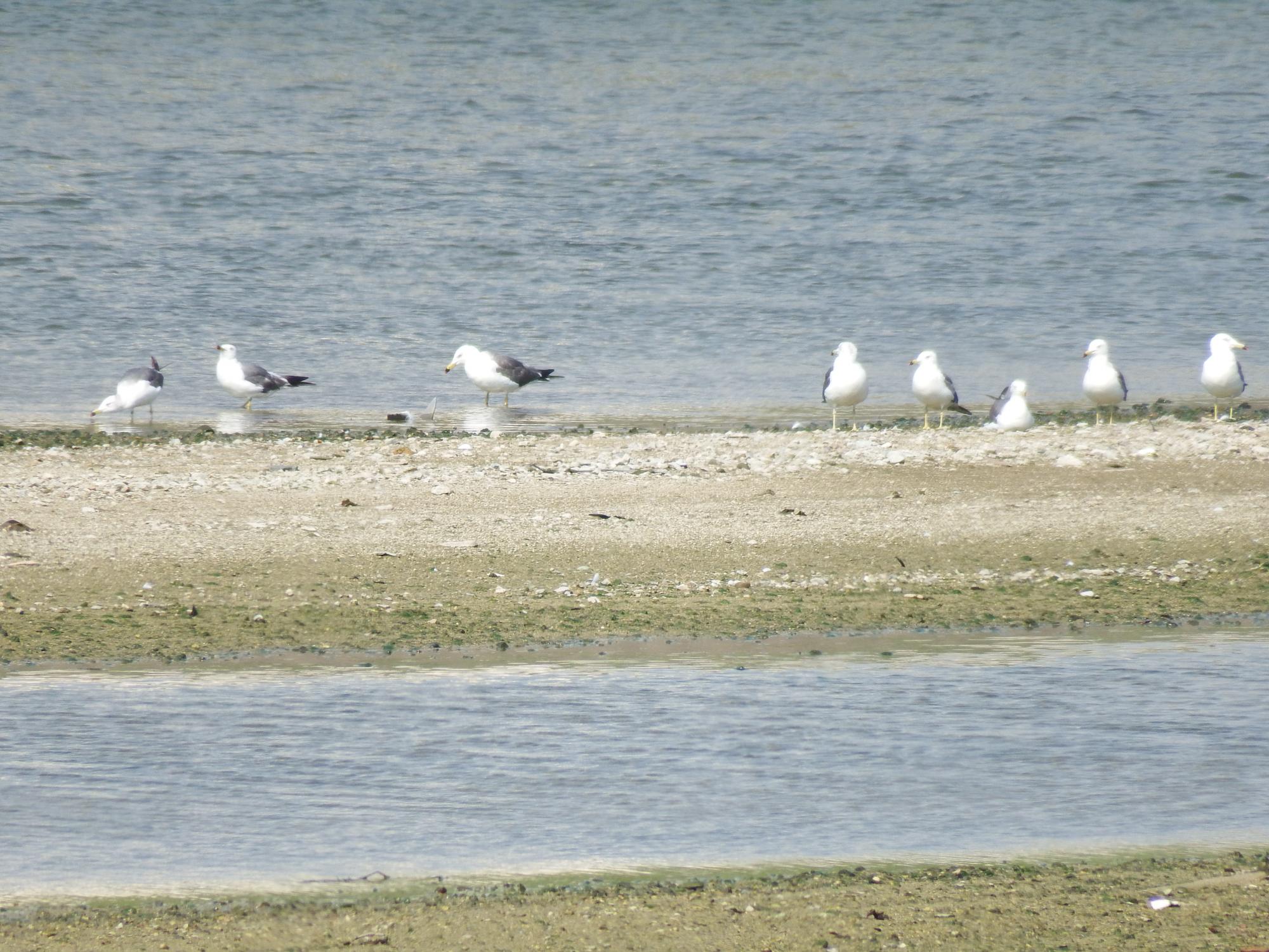 大和川へ移動、阪堺電車東側の中洲にウミネコが数十羽、去年も同じようにウミネコがいました。