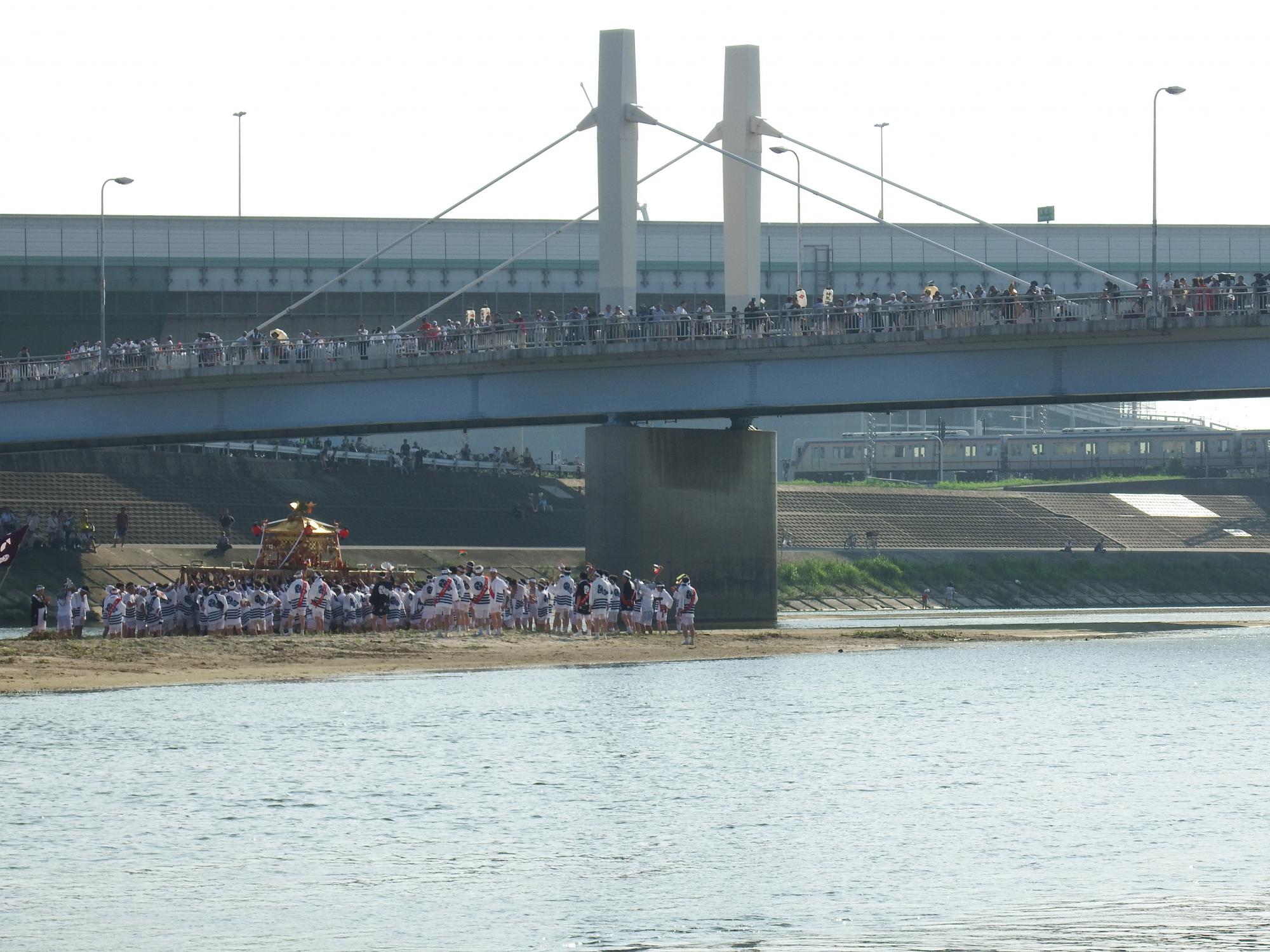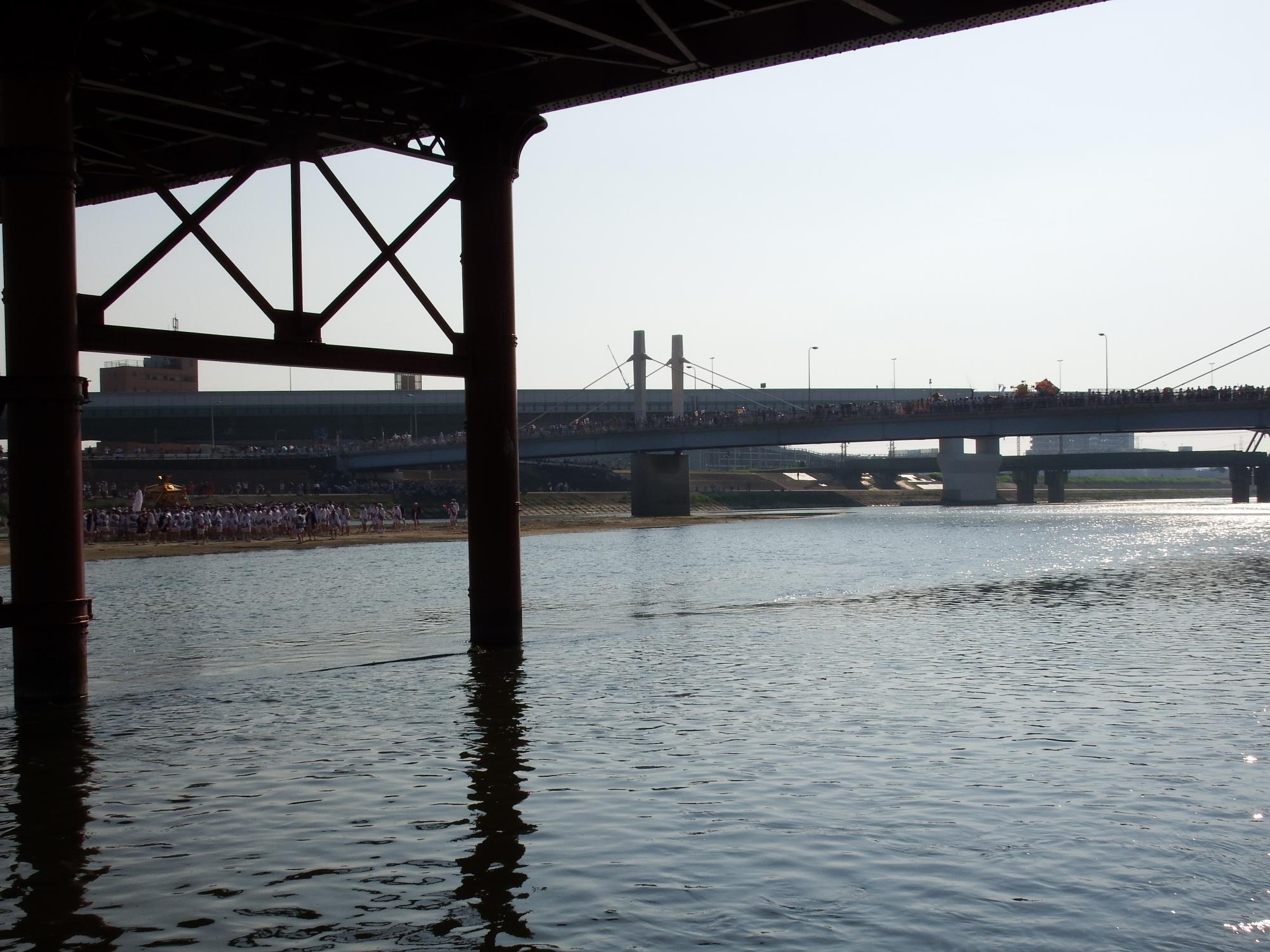 せーら、せーら、の掛け声で、大和川を渡ります。カッコいいです。