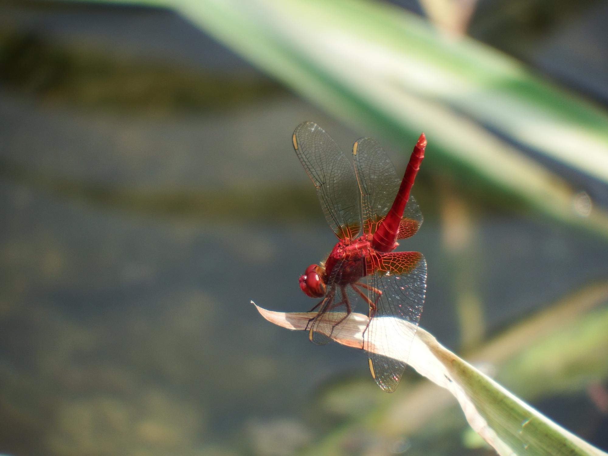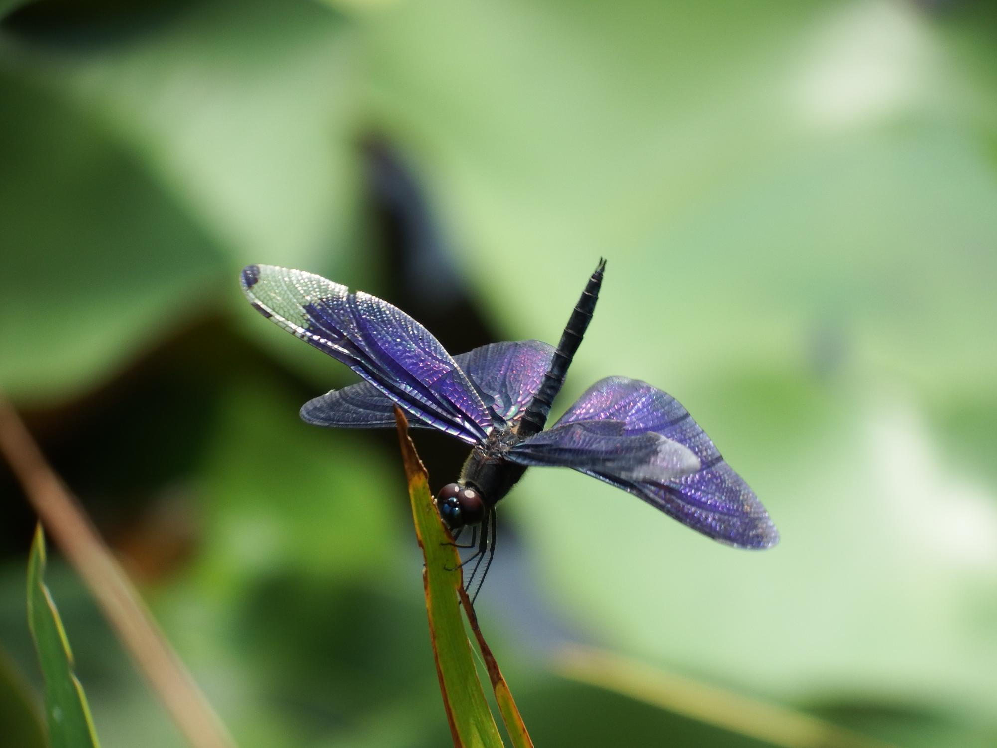 ショウジョウトンボとチョウトンボ。チョウトンボは光の加減で色がずいぶん違って見えます。