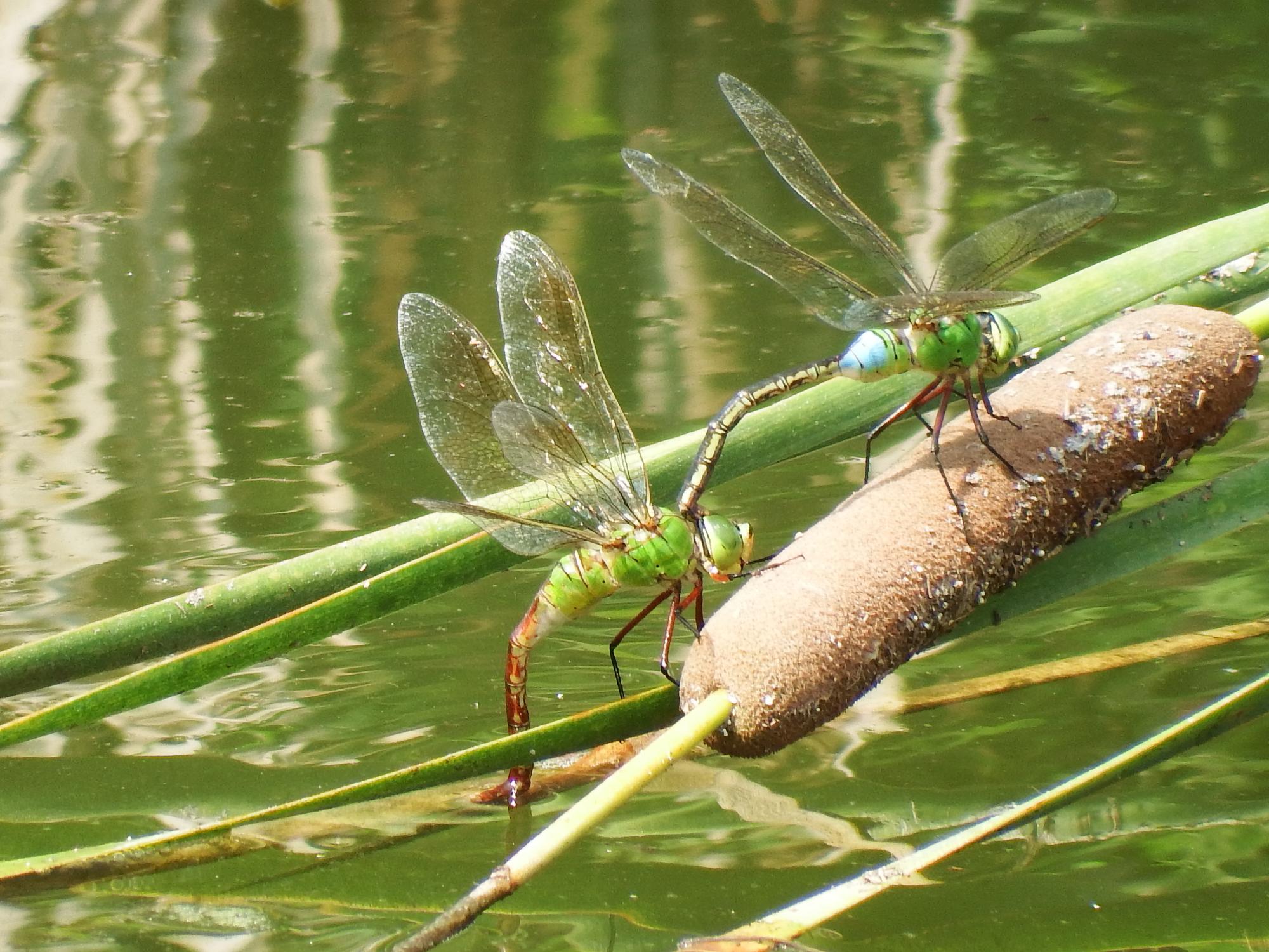 大池に戻ると、タイワンウチワヤンマと連結ギンヤンマ。
