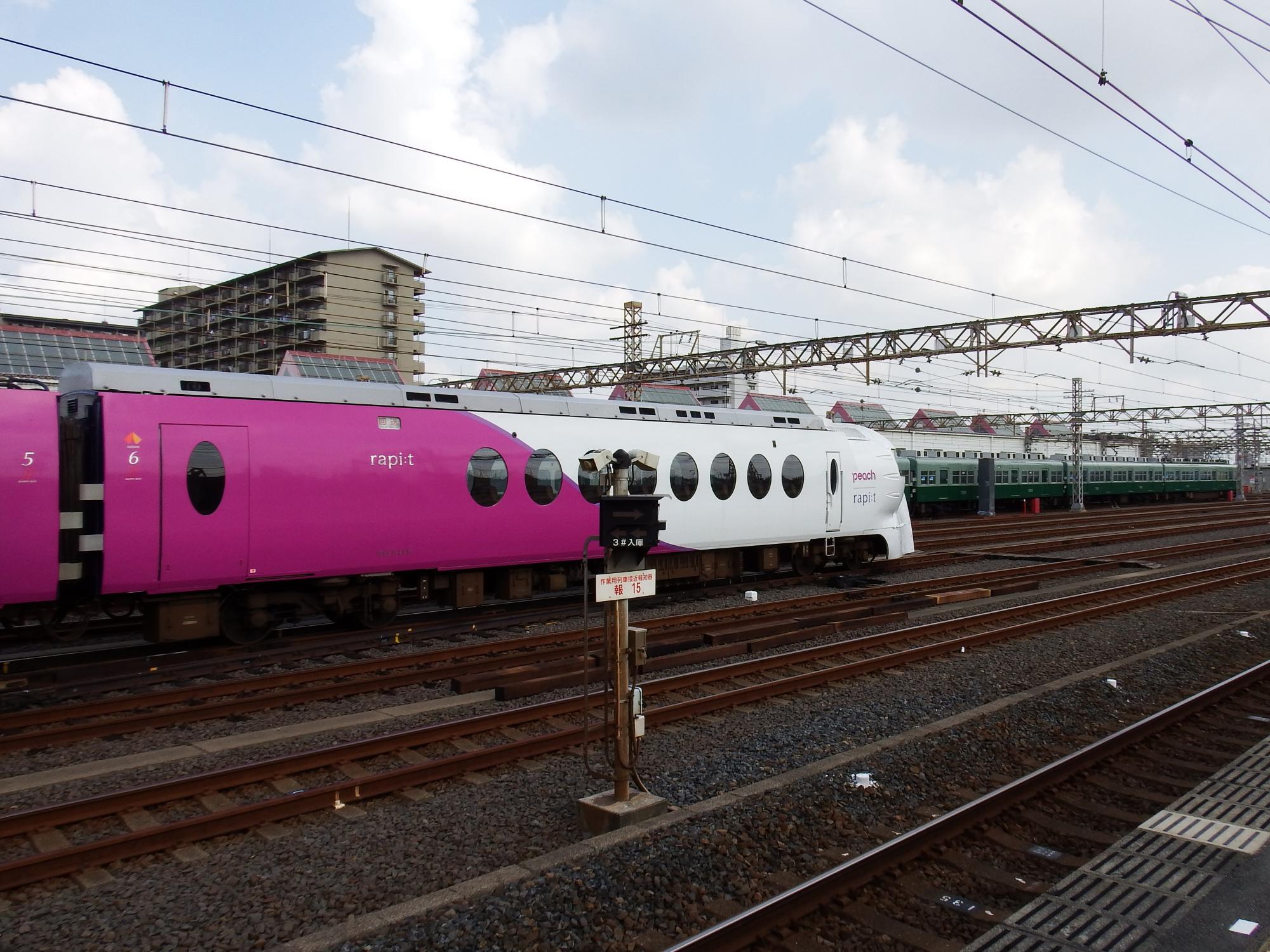 ピーチ×ラピートとのツーショット、予想以上に人気を博したピーチ×ラピートも今月いっぱいで元の塗装に戻るはず。