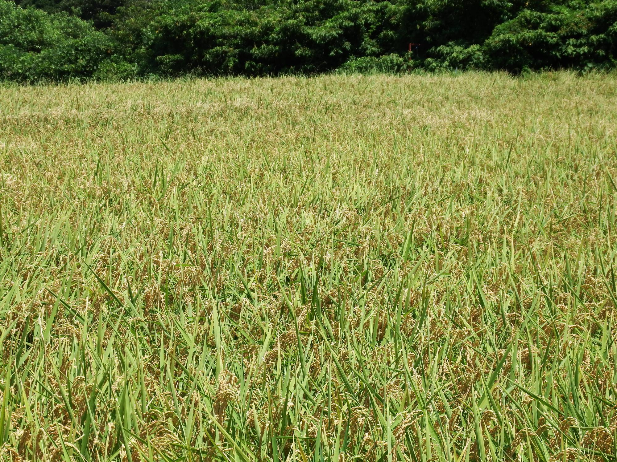 線路のほうへ下りる小道を下りてみました。もうかなり実った稲穂とオオシオカラトンボ。