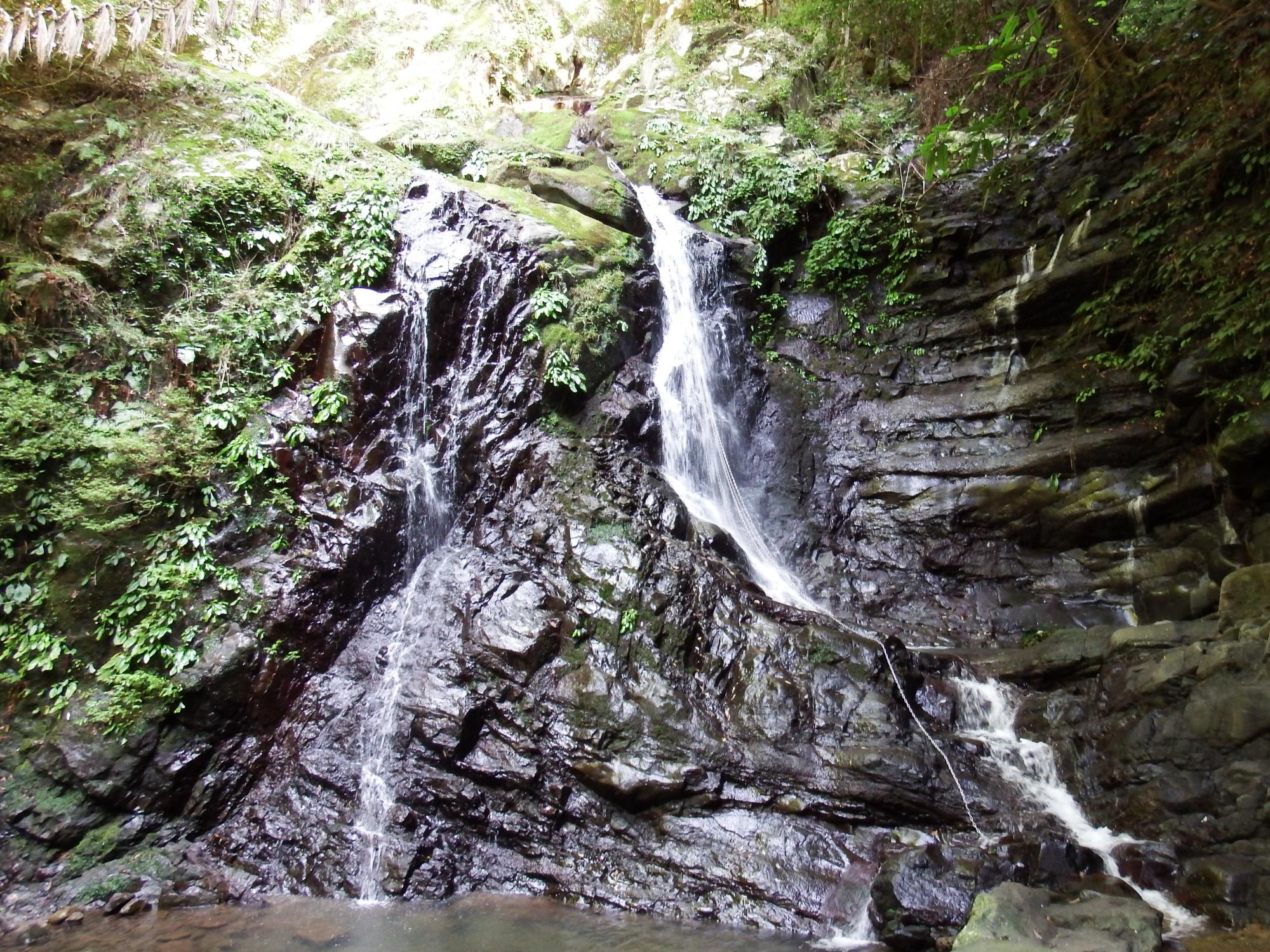 射手矢さん、食野さん、神藤さん、と泉佐野らしい寄進者名の石柱が並ぶ七宝瀧寺を抜け、行者の滝までやってきました。役行者が開山した修行の場、今も修験者が修行する滝です。涼しくて心地いいということもありますが、何か去りがたい思いがする滝です。