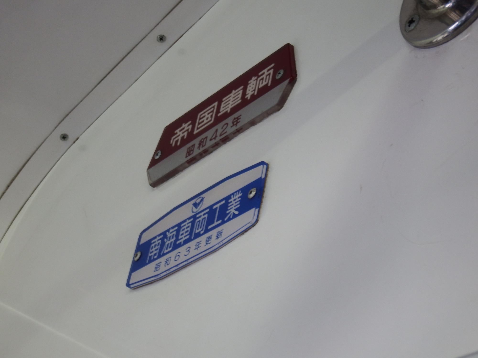 モハ7037の銘板。