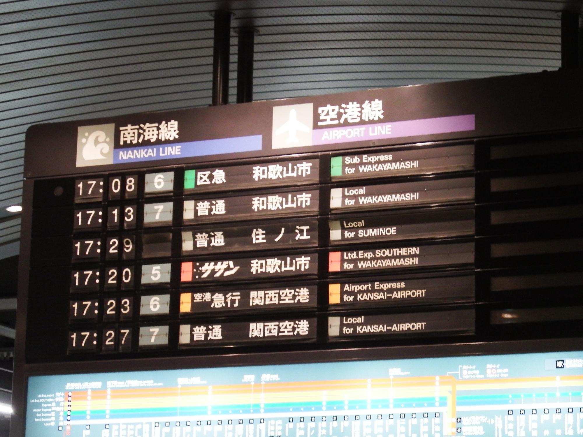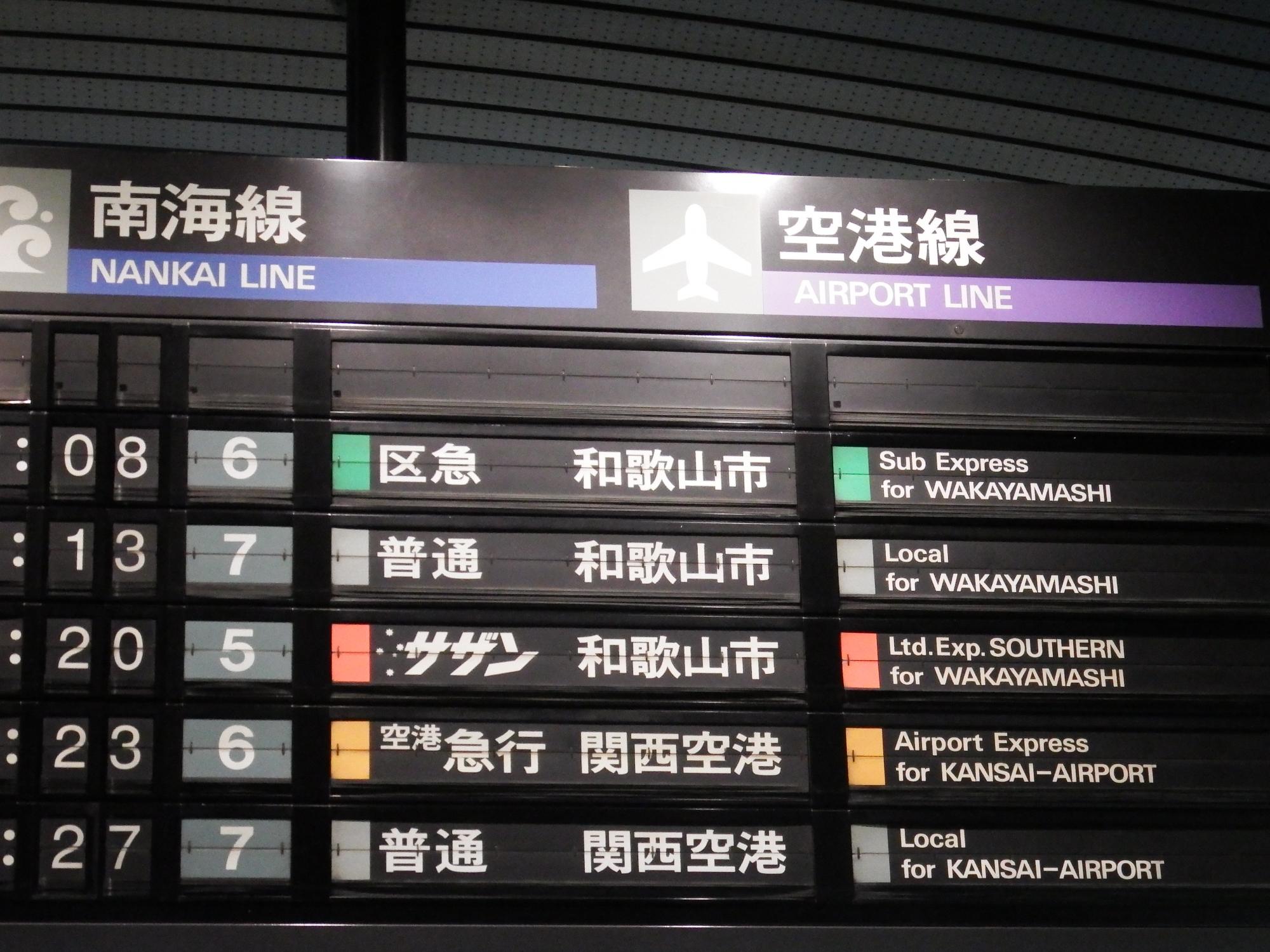 犬鳴山のバス停に着くとちょうどバスが出るところで、泉佐野駅に着くとちょうど緑のサザンがやってきました。