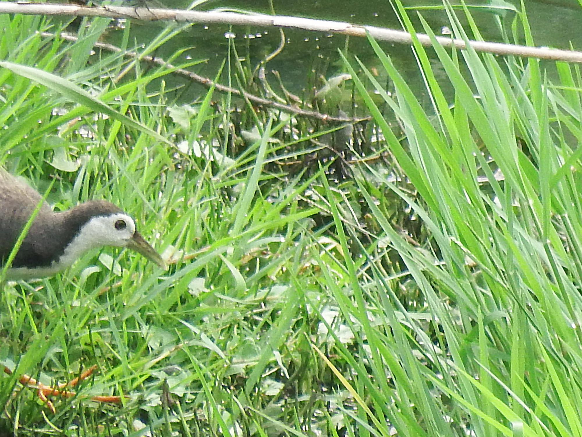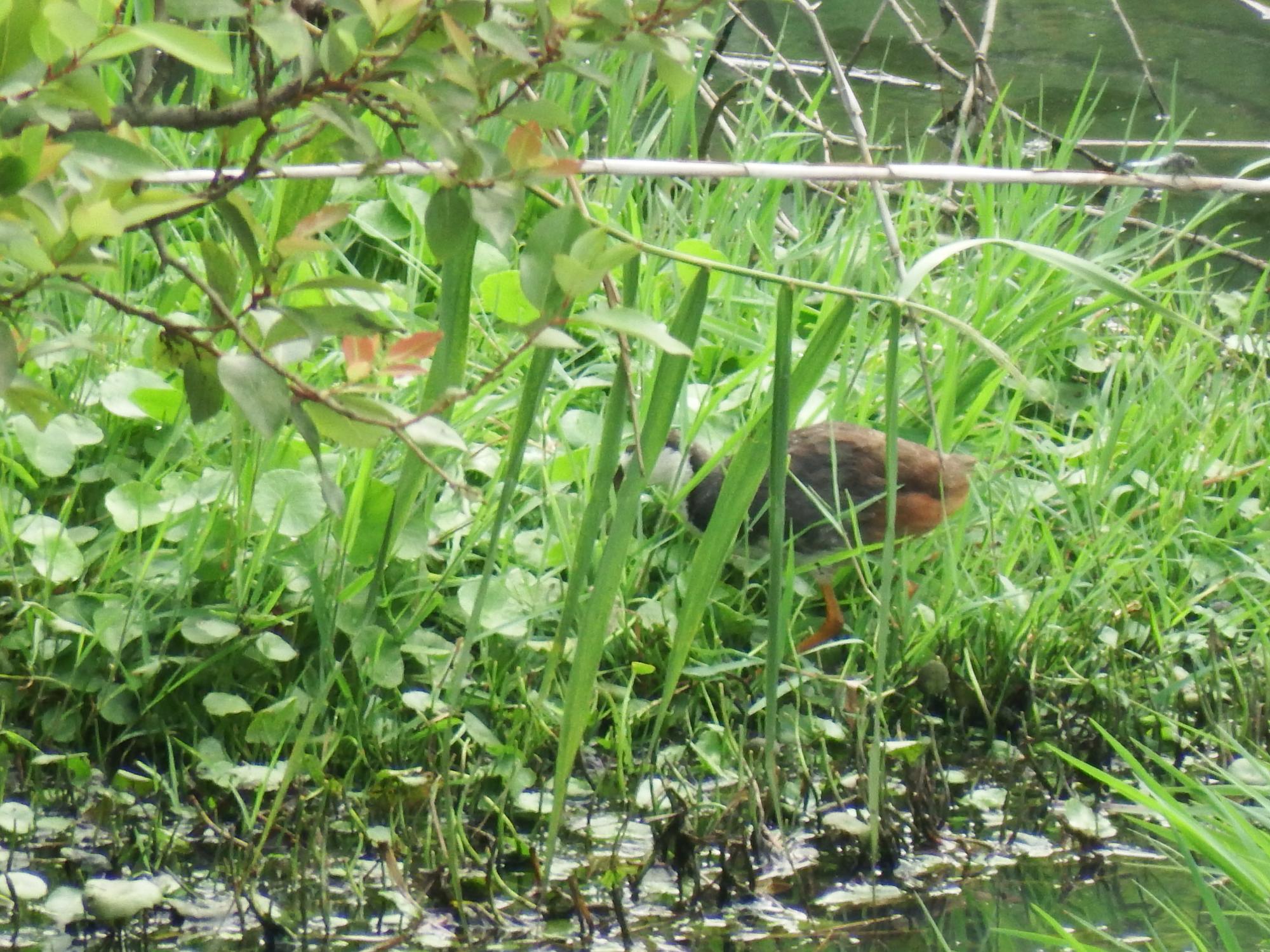 みんなのレンズが向かっている方をしばらく睨んでいると、池の中の小島の繁みに姿を現しました。シロハラクイナ、大阪府内では初観察だそうです。バンを上品にしたような感じです。
