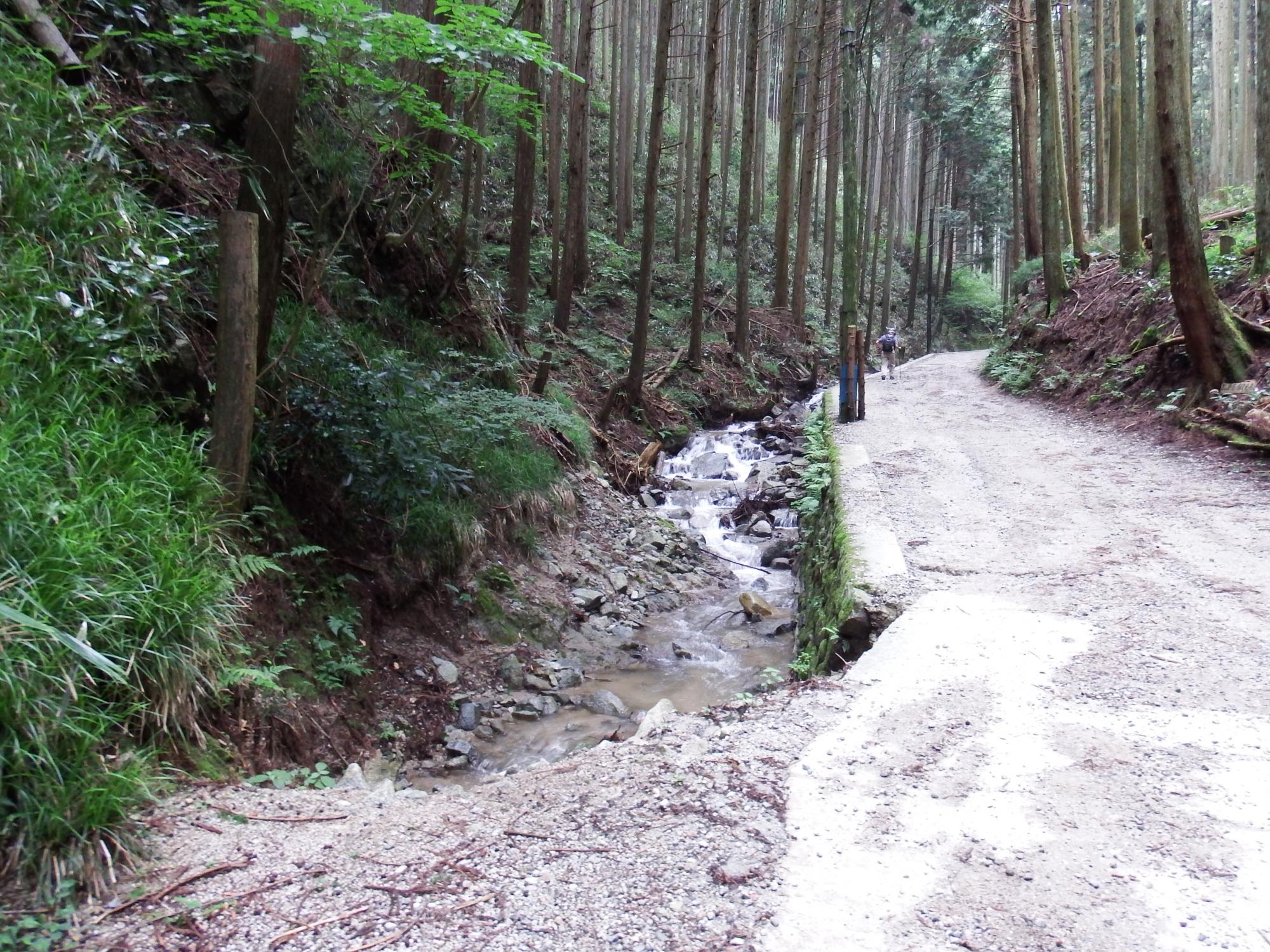案内板の「山頂」を目指します。植林ではない杉の巨木の森、役行者や楠正成の頃から変わっていない光景かと思われます。