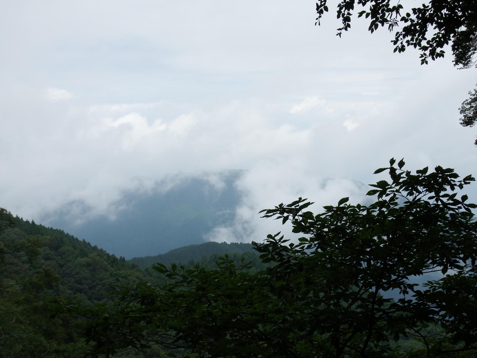 金剛山の最高地点標高1125m葛城岳は葛城神社の裏側にがありました。しかし神域のため立入禁止。雲間から大和葛城山が見えてきました。