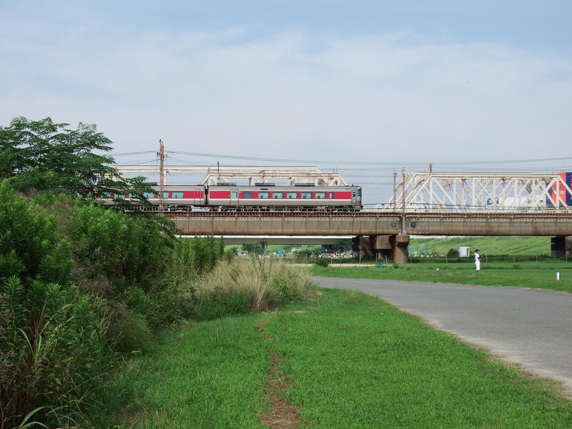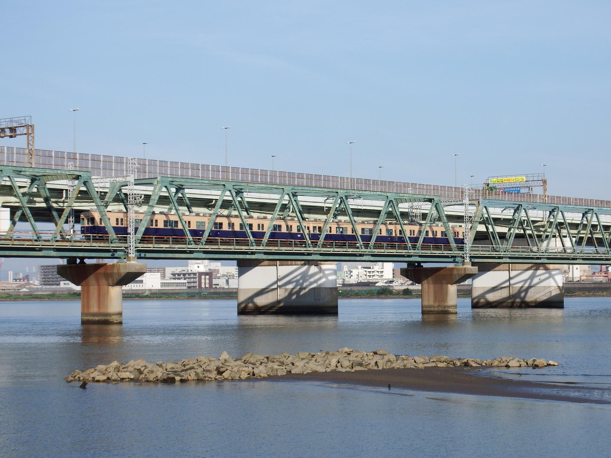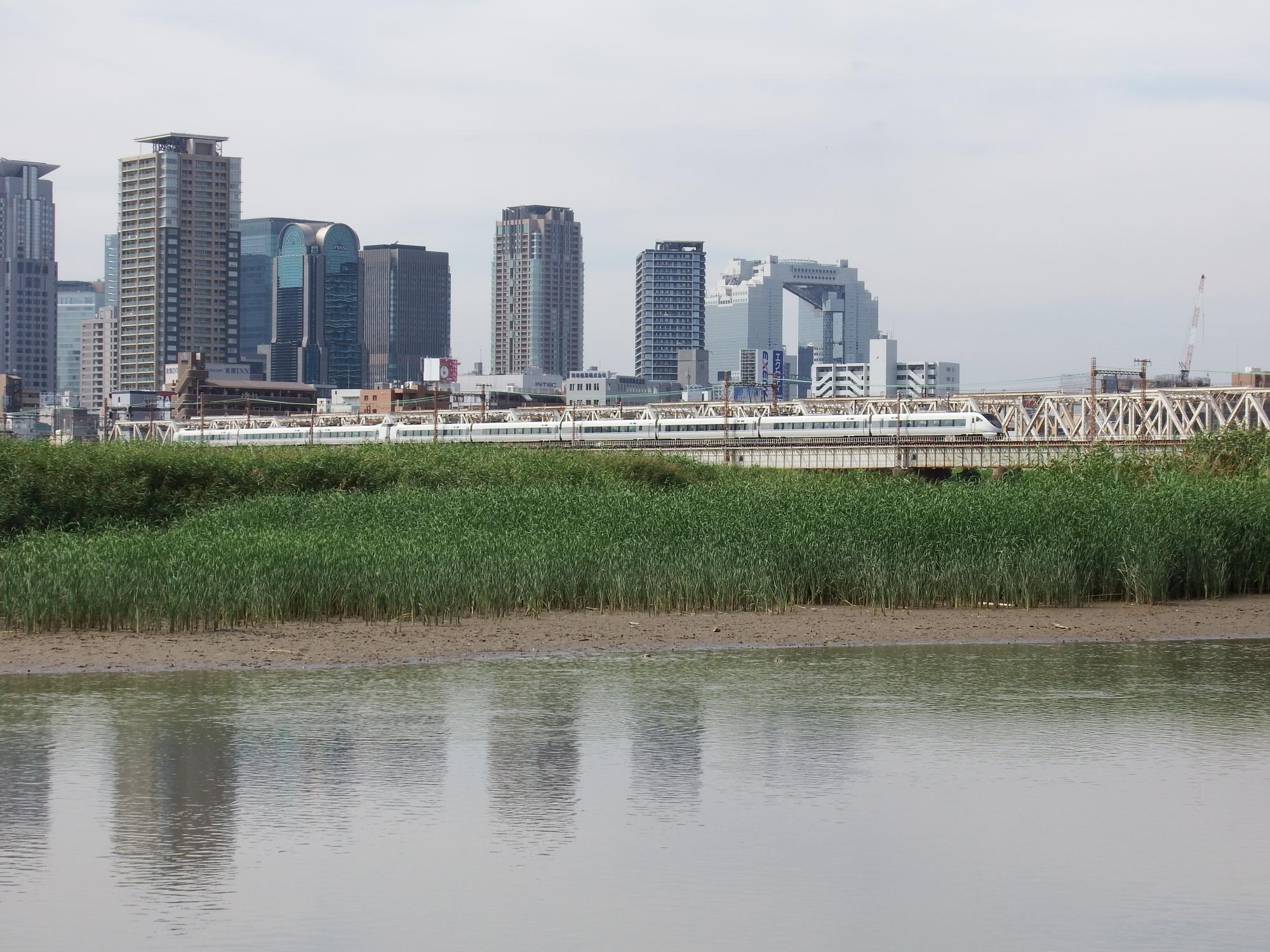 上淀川鉄橋を渡るキハ189系はまかぜとヤマトシジミ。