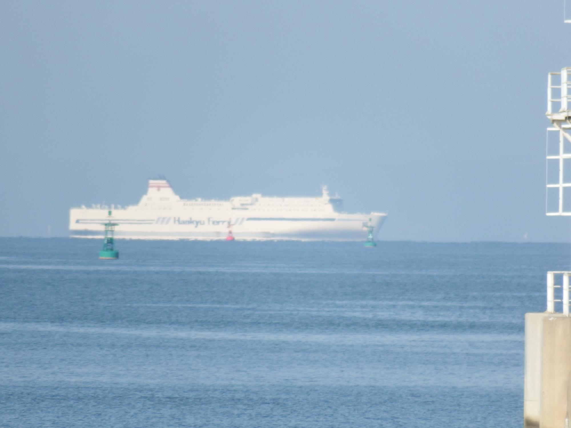 沖を行く客船は神戸港へ入港する阪九フェリー。鳥はいないけど景色は結構です。