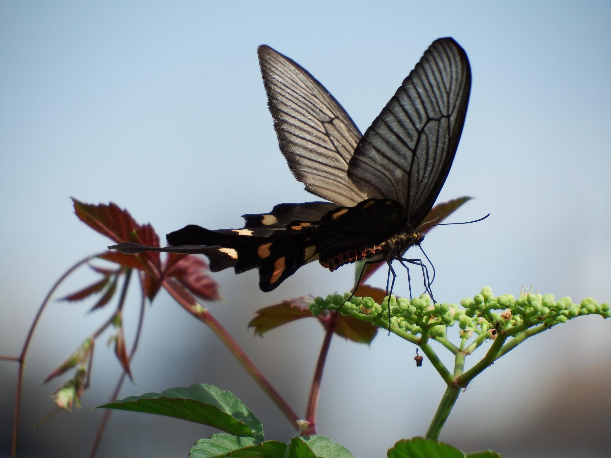 アゲハモドキ、蝶ではなくチョウ目アゲハチョウ科で蛾の1種です。かなりの数が舞っていて、アゲハチョウと生態が違っているようです。