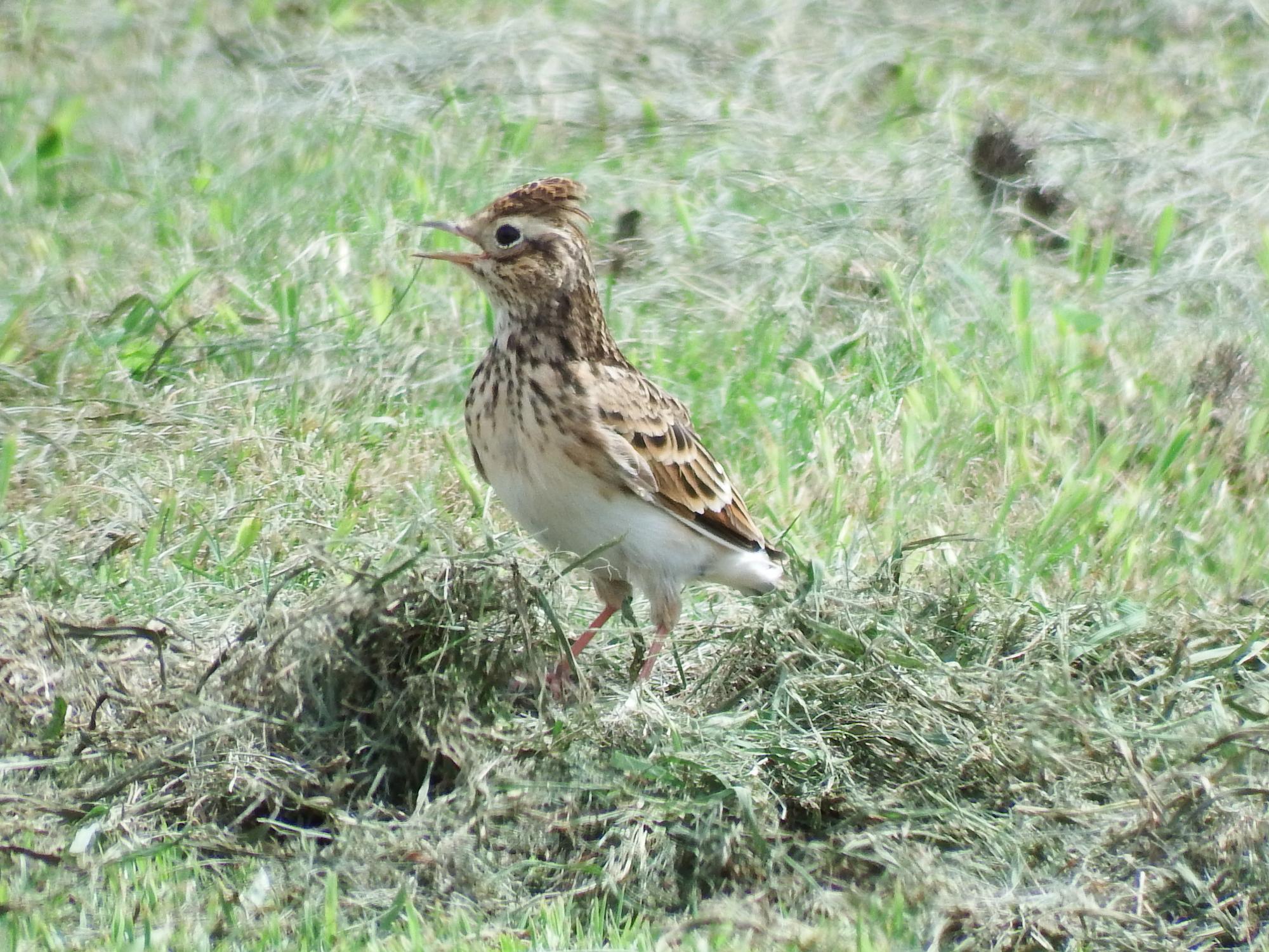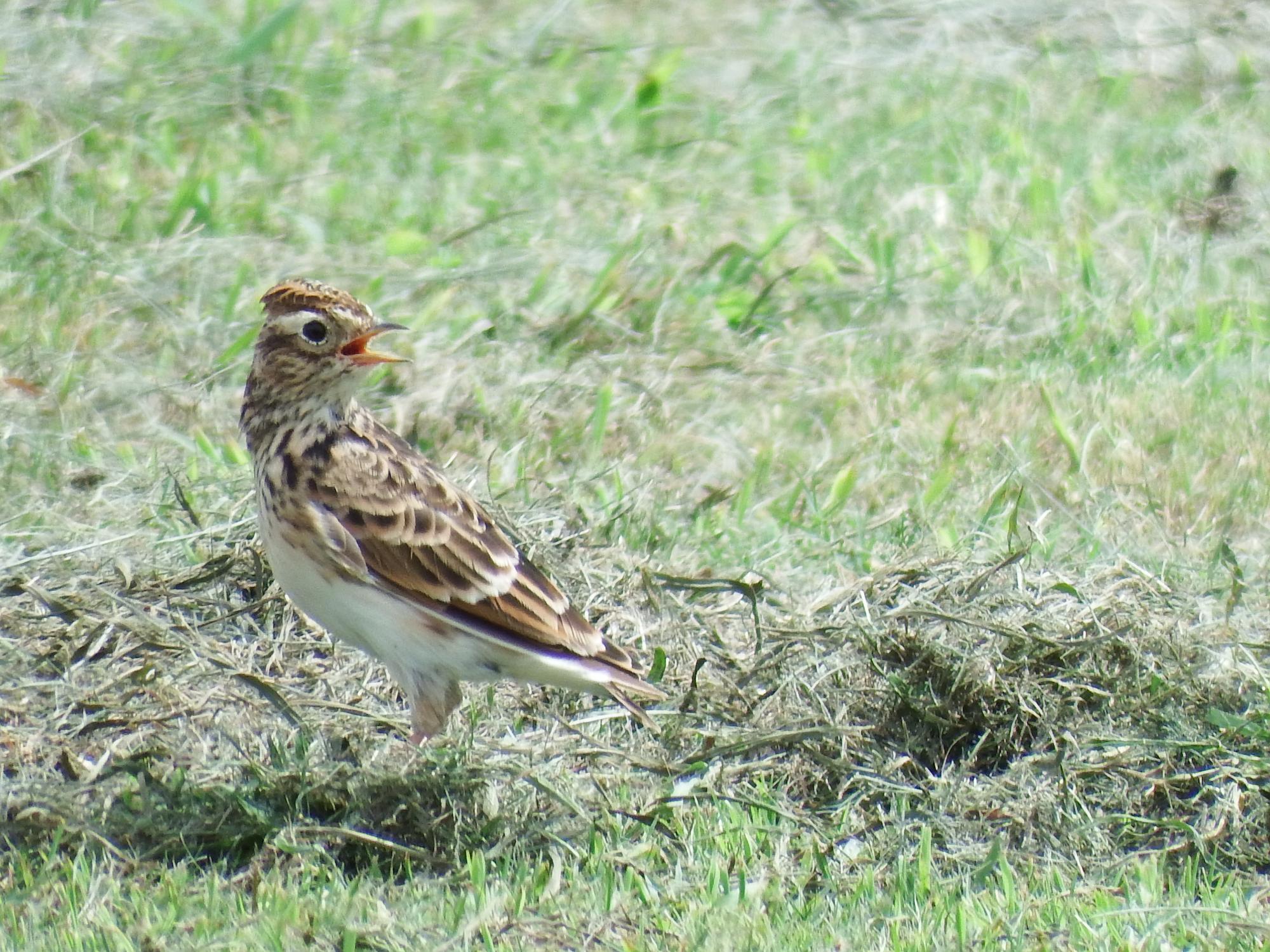 鳥飼までやってきました。ヒバリが鳴いていないのに口を開けたままです。