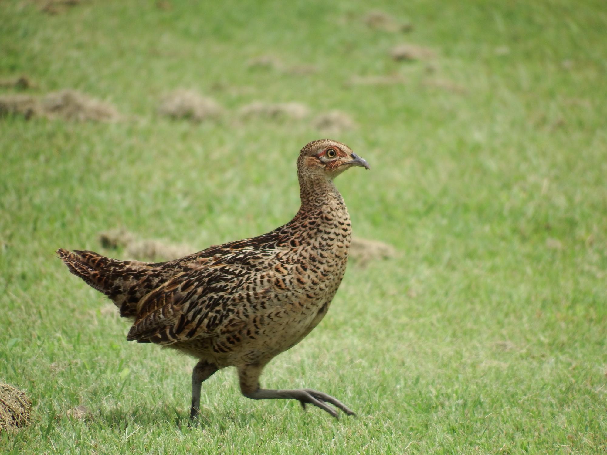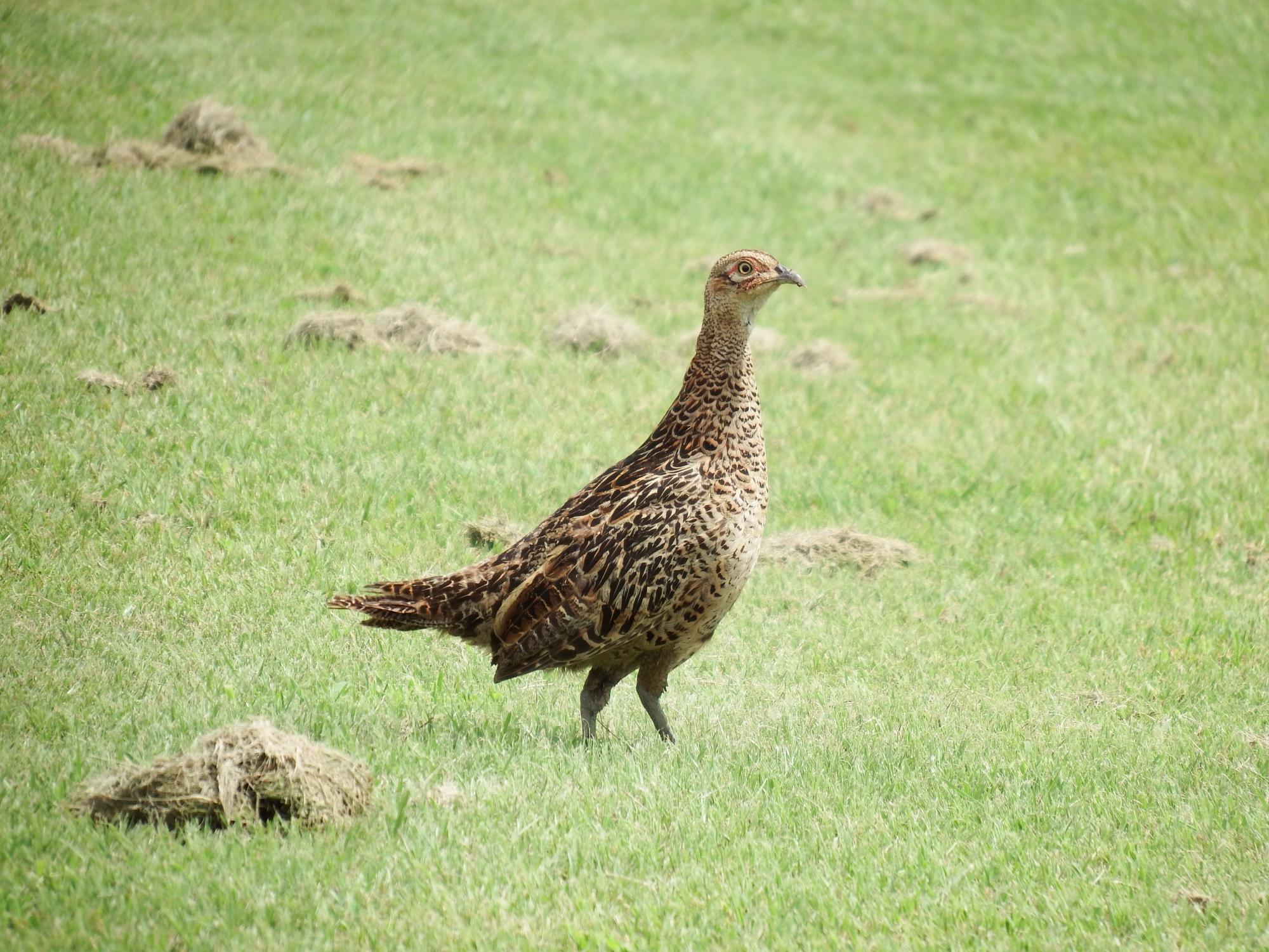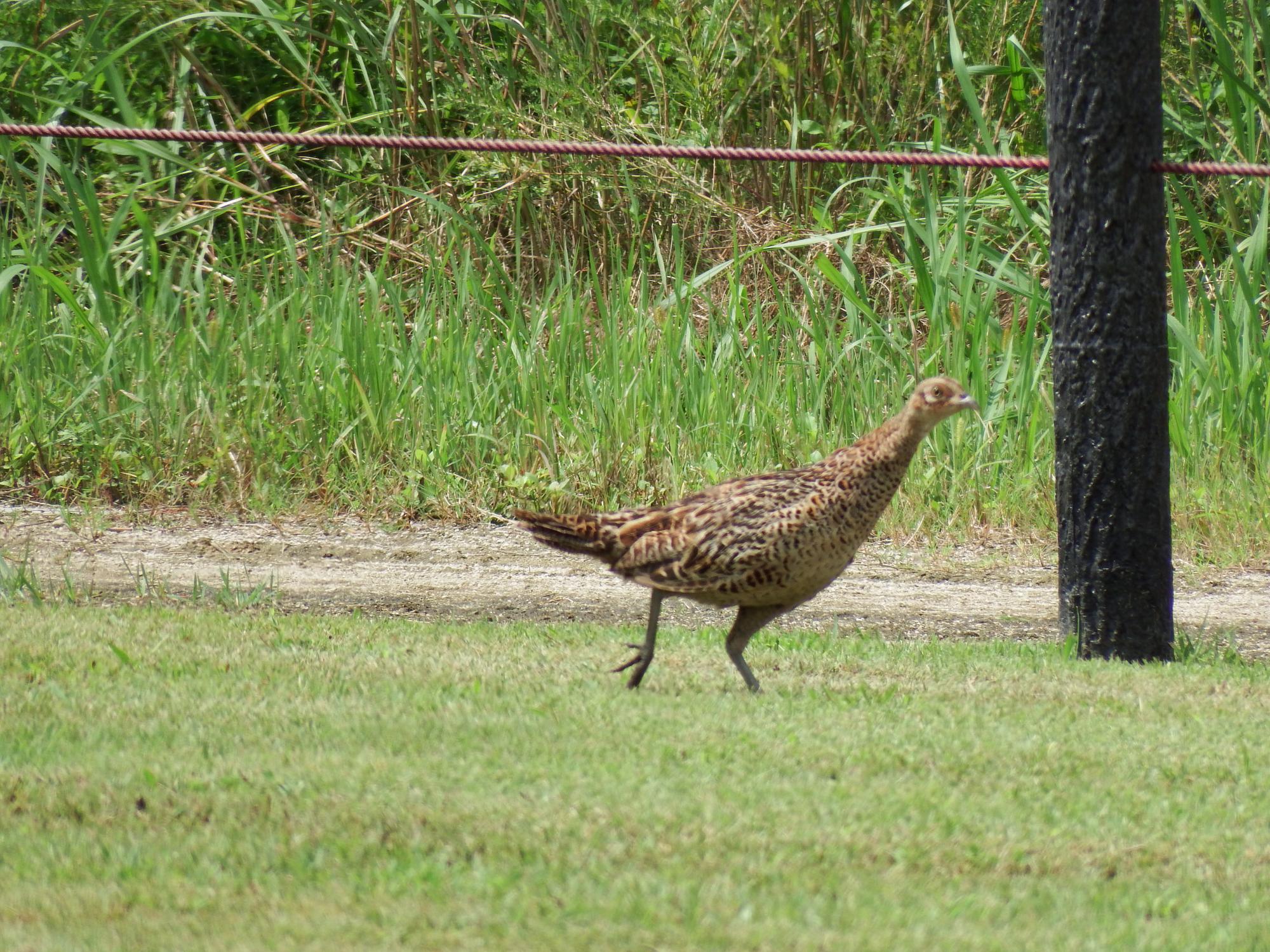 でっかい鳥が出てきてビックリ、キジ♀です。日本の国鳥、平等院の鳳凰になる前の1万円札裏面にも描かれていました。