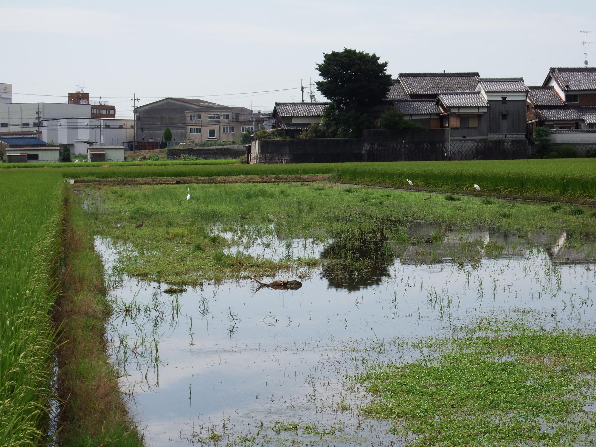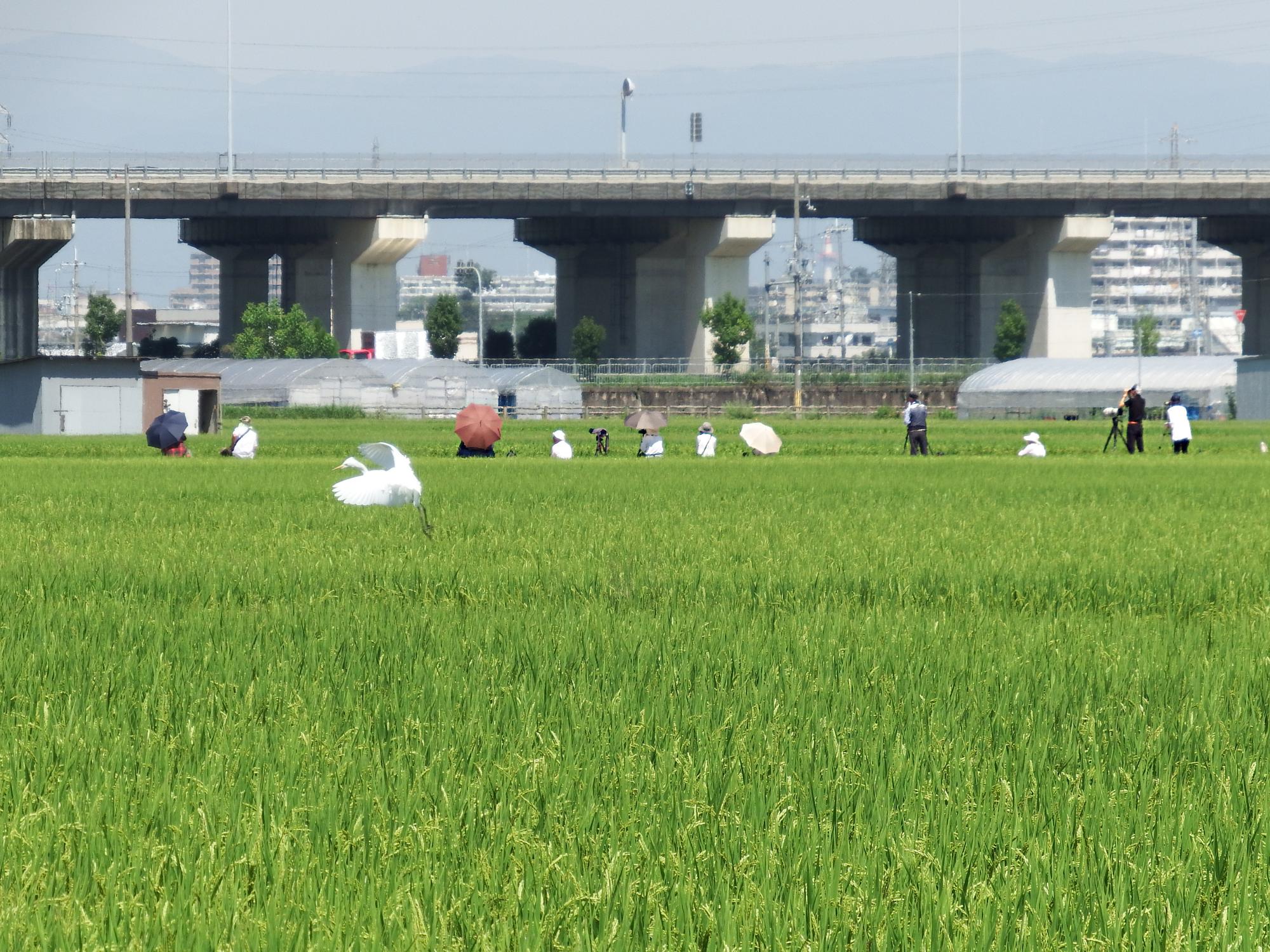 稲穂から首を出しているダイサギを見ながら久御山の方へ戻ることにします。