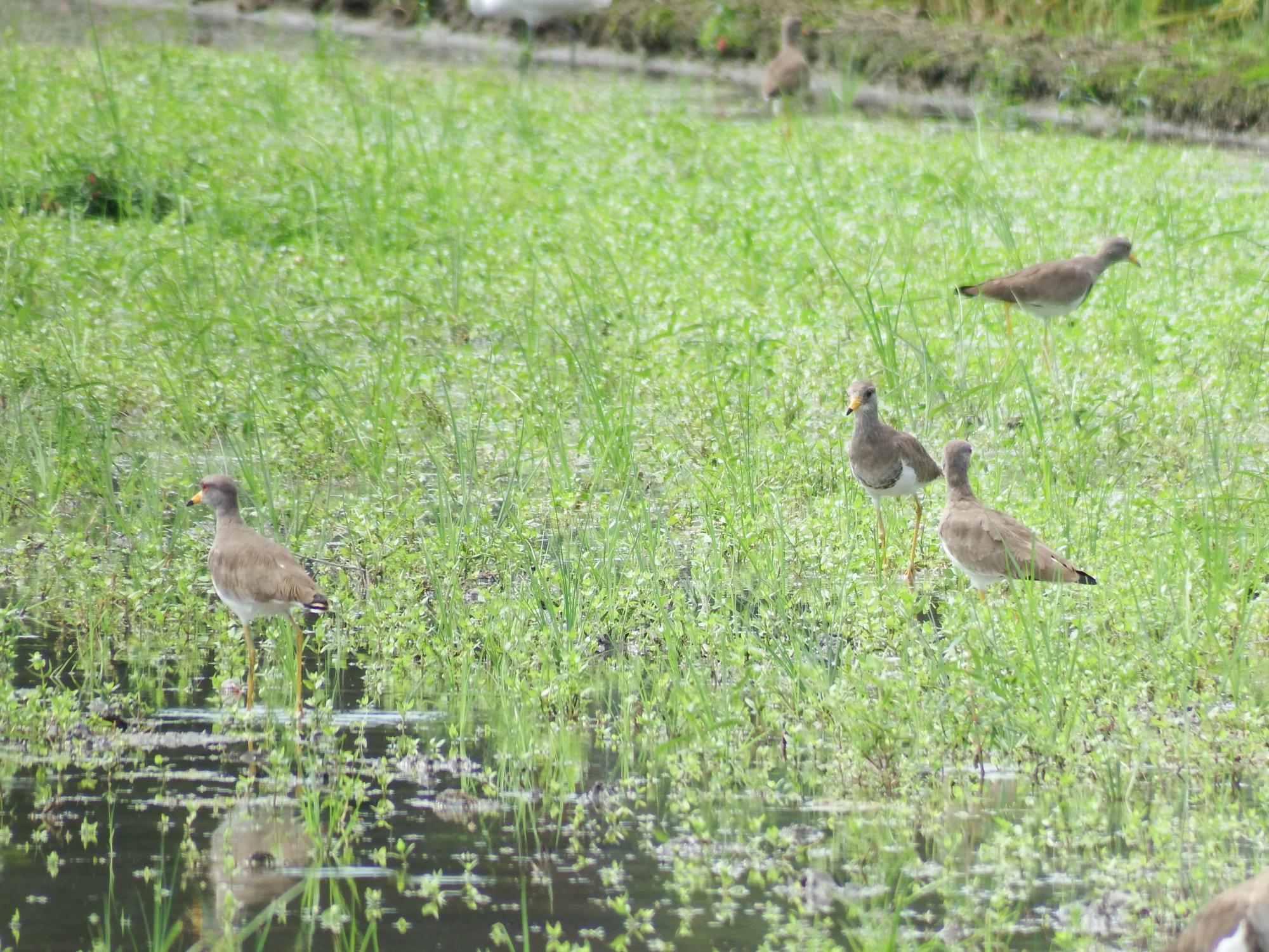 巨椋池の手前、久御山町にも広大な田園が広がっています。水の入った休耕田を見つけました。ケリがたくさんいます。向こう側奥の方に、他にも何かいそうなのですが、よくわかりません。