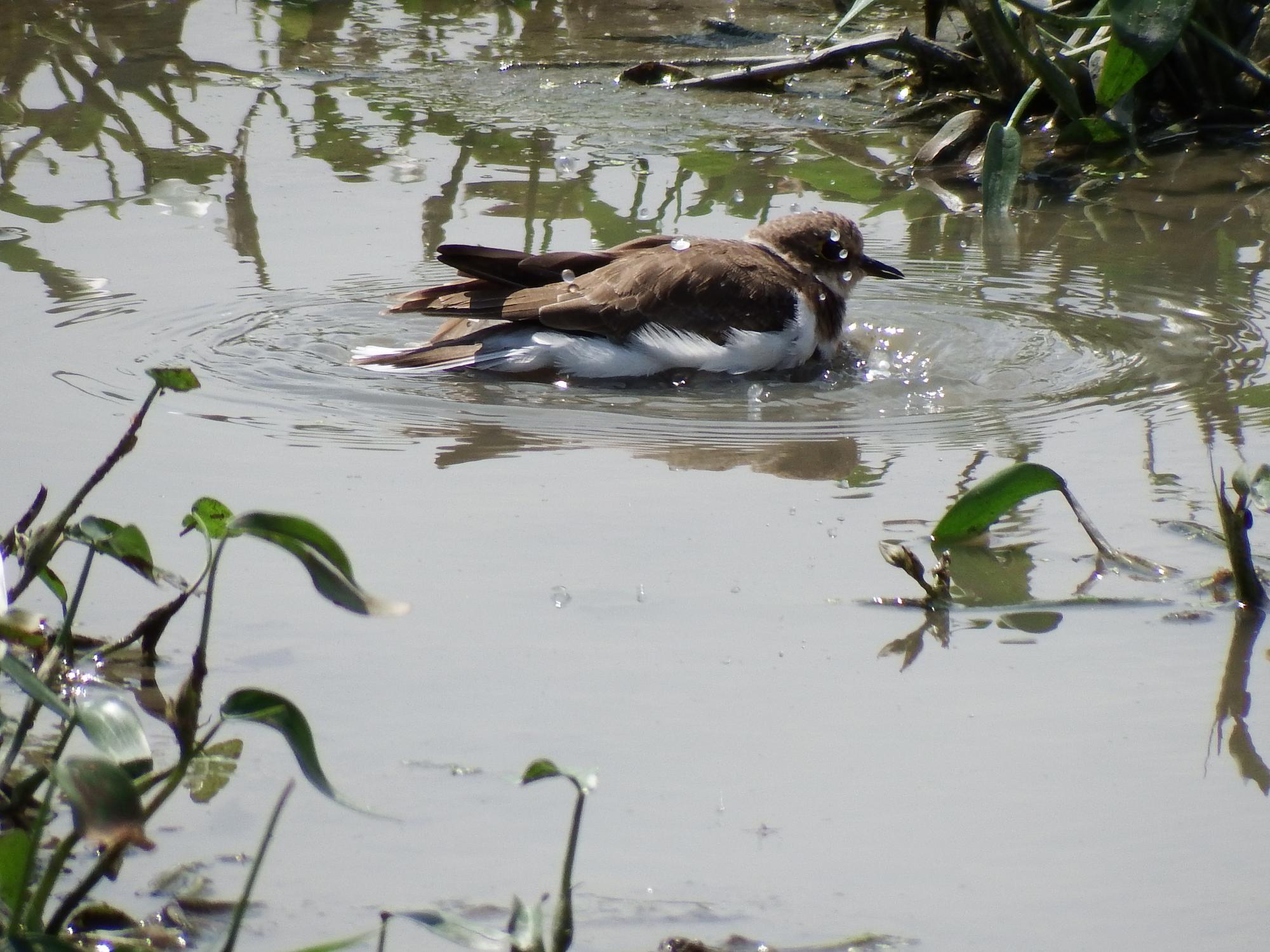 久御山町に戻ってきて、古川という木津川の小さな支流を遡っていきます。久御山高校近くの休耕田に10羽くらいのイカルチドリ。