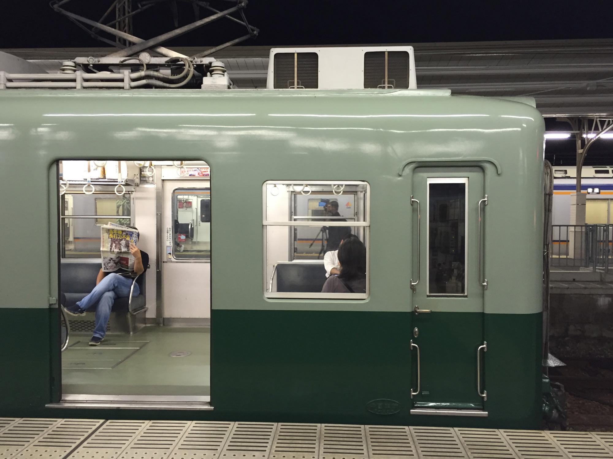 席に座らずにこのままレンケツで立って行くことにします。高校通学の頃、7000系や7100系の4連と2連の間のレンケツは自分たちの指定席でした。
