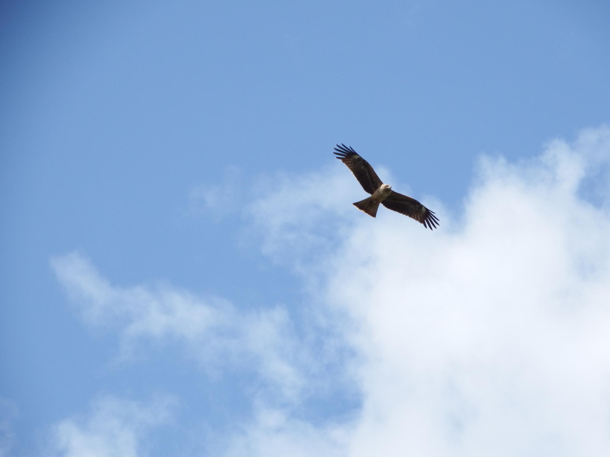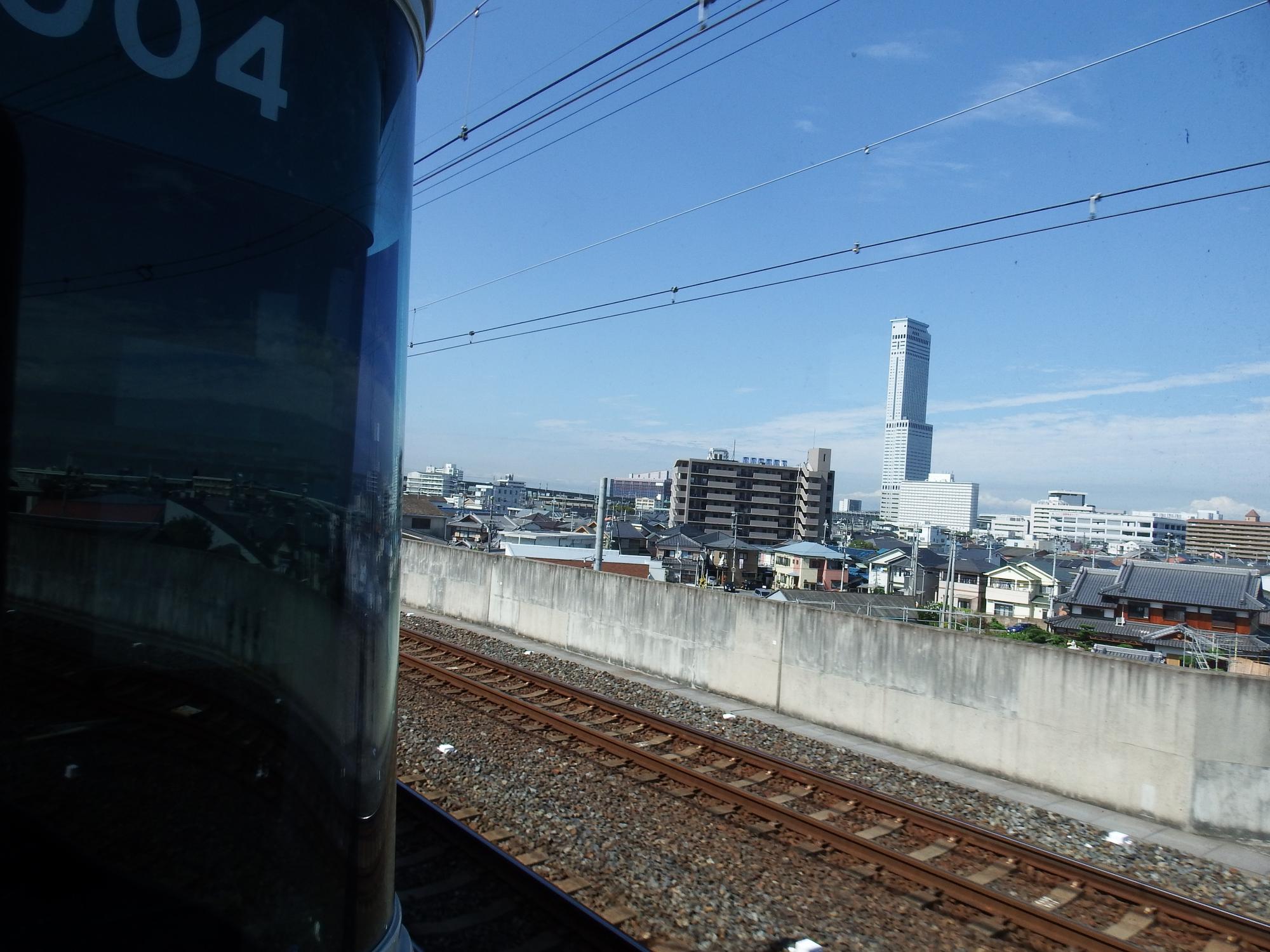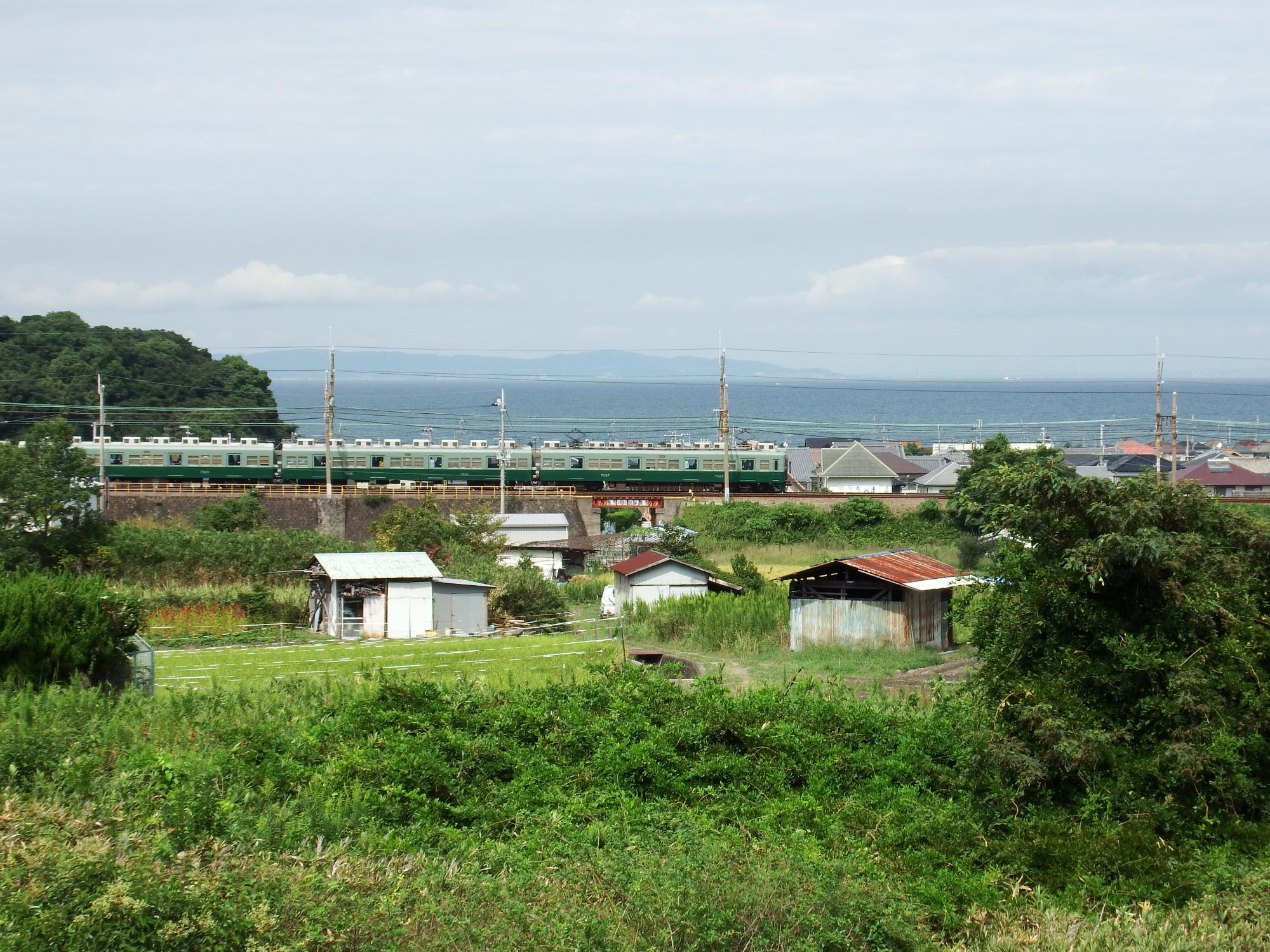 ひと月前に来たばかりの最初の目的地到着、12000系+8000系のサザン通過、上空ではトンビがピーヒョロロ。