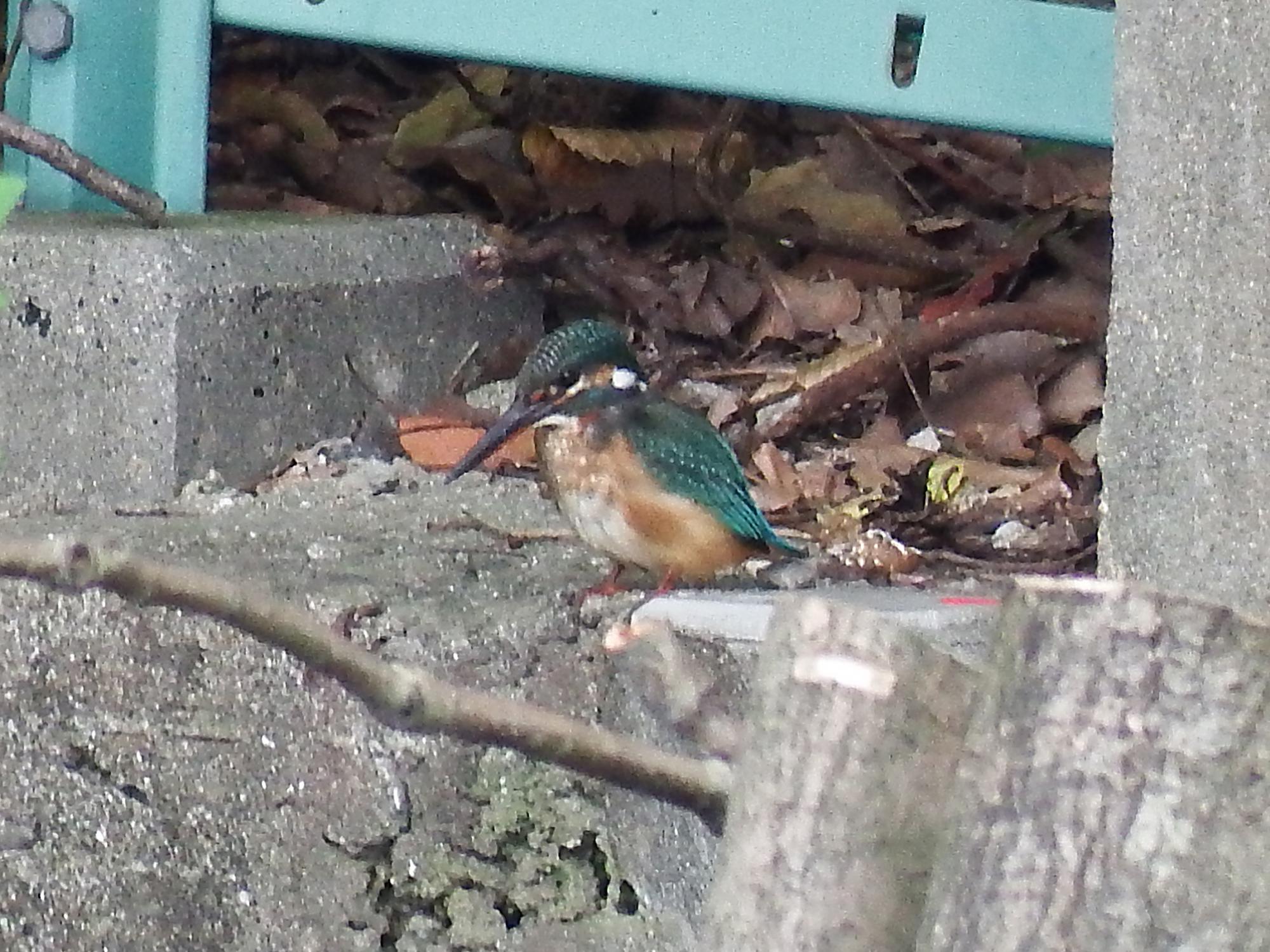 桜宮公園のひょうたん池でカワセミ、まだかなり若くて黒っぽいですが、これからキレイになっていくはずです。