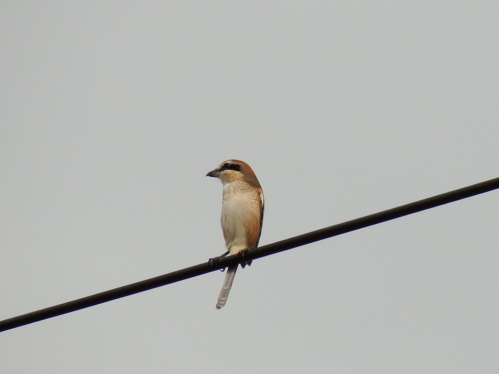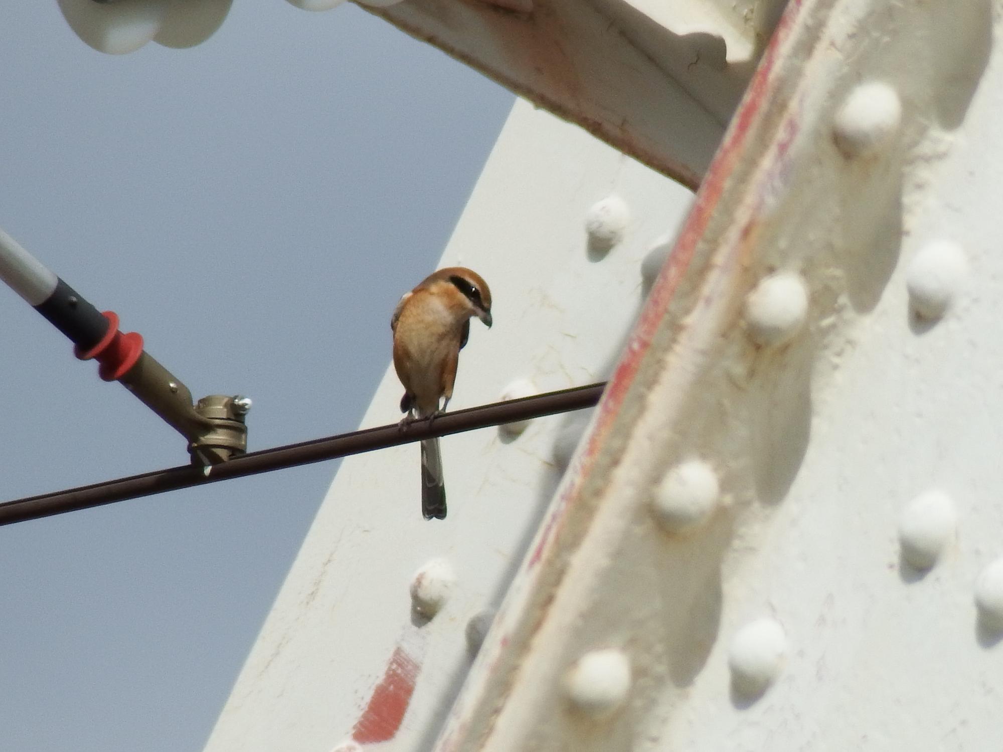 鉄橋にモズの♂が2羽、喧嘩寸前かと思ったら、どっちも離れて行きました。