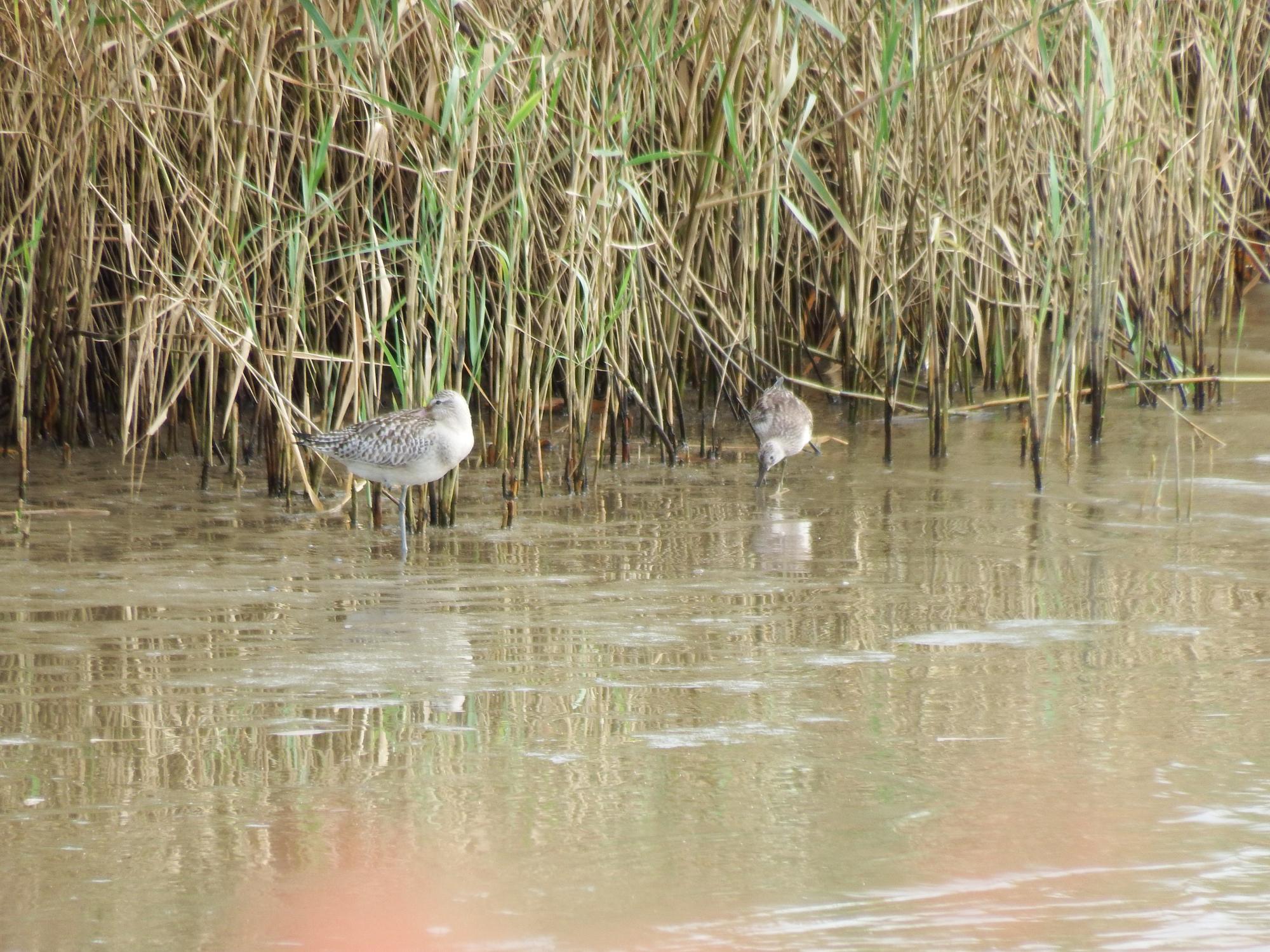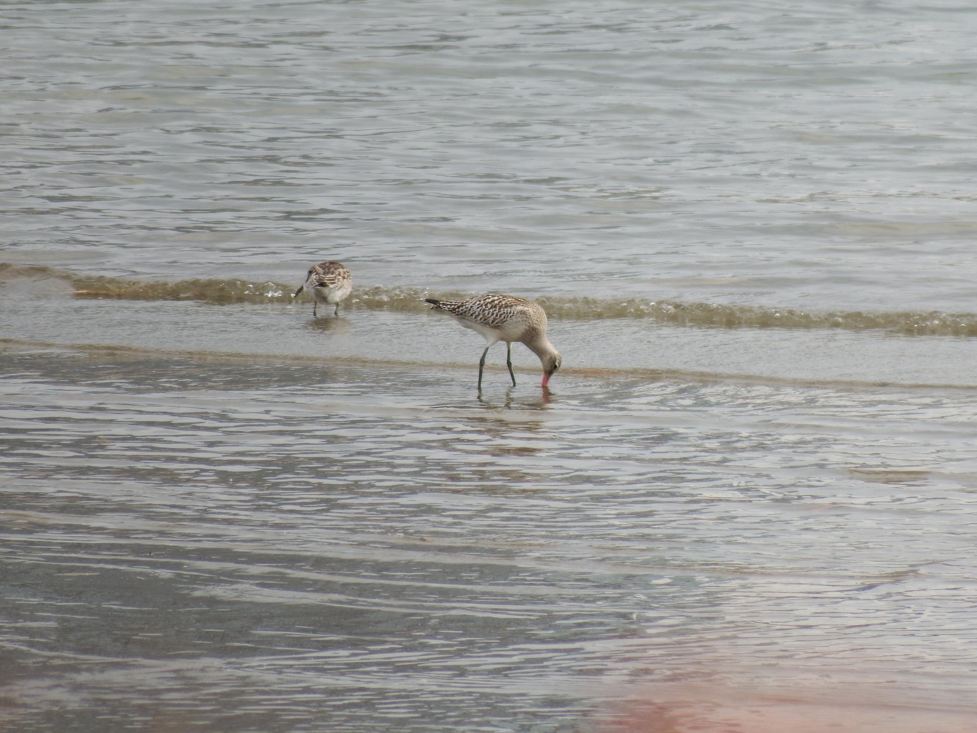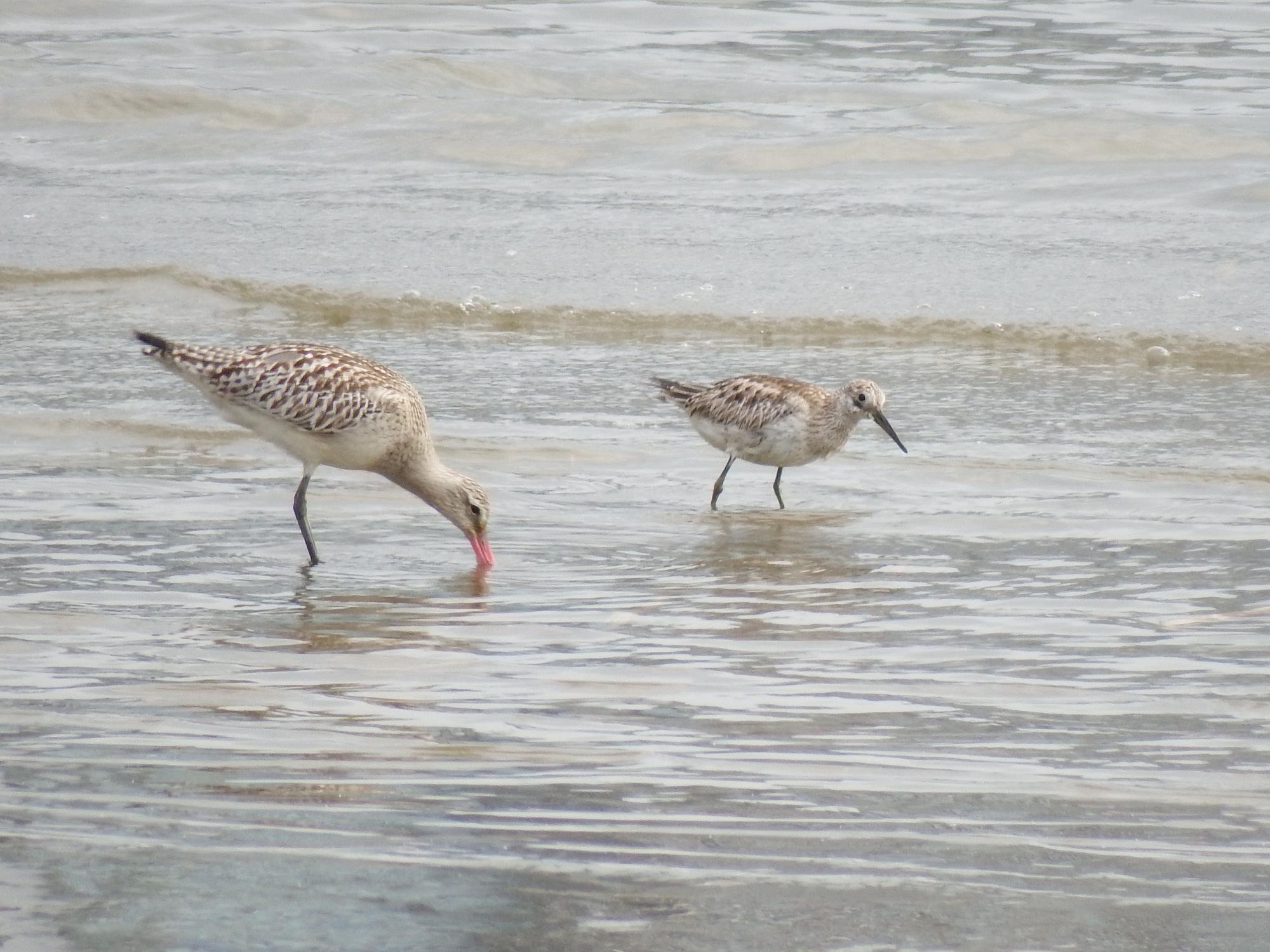 十三干潟でオオソリハシシギとオバシギ。