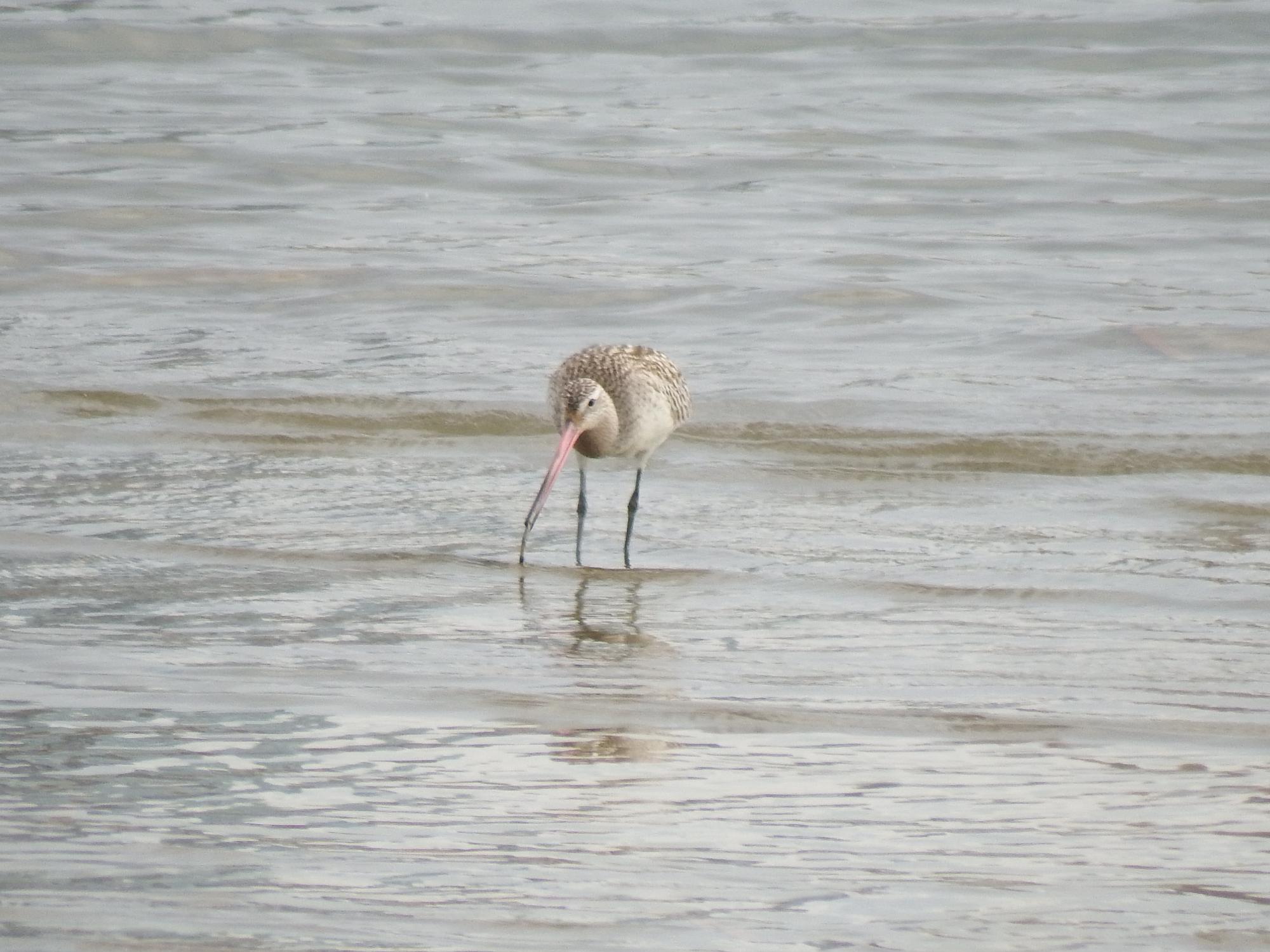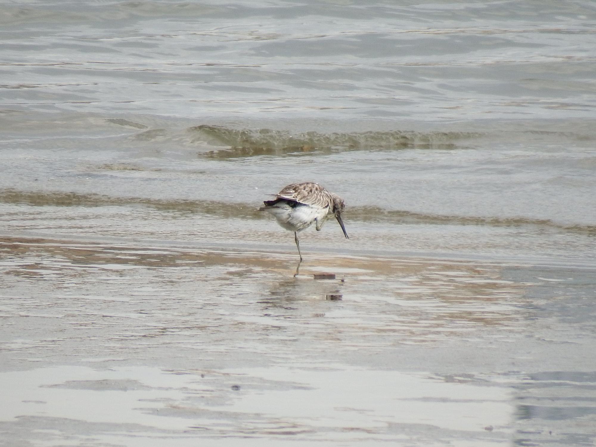 モズを撮ってる内にオオソリハシシギが目を覚ましたようで、早速朝ごはん?を探し始めました。