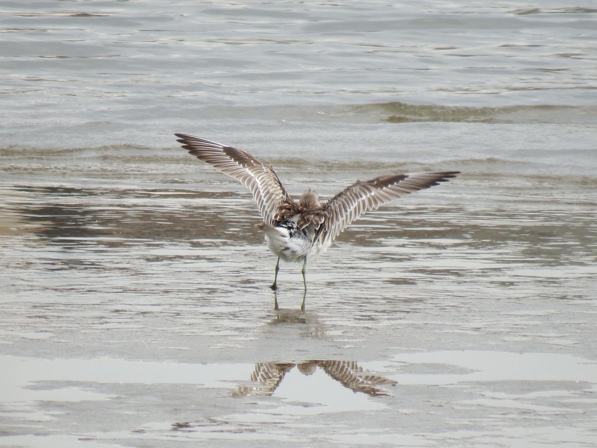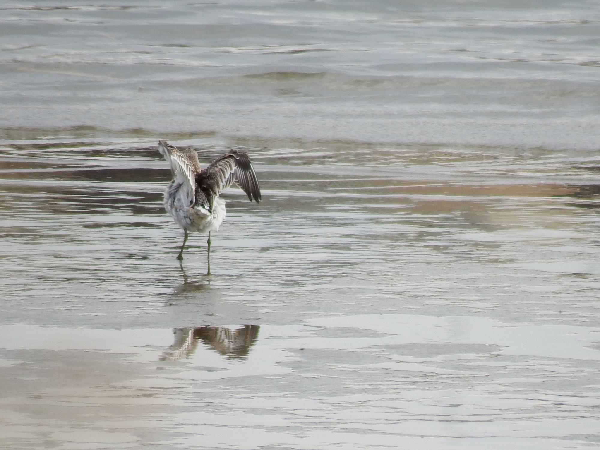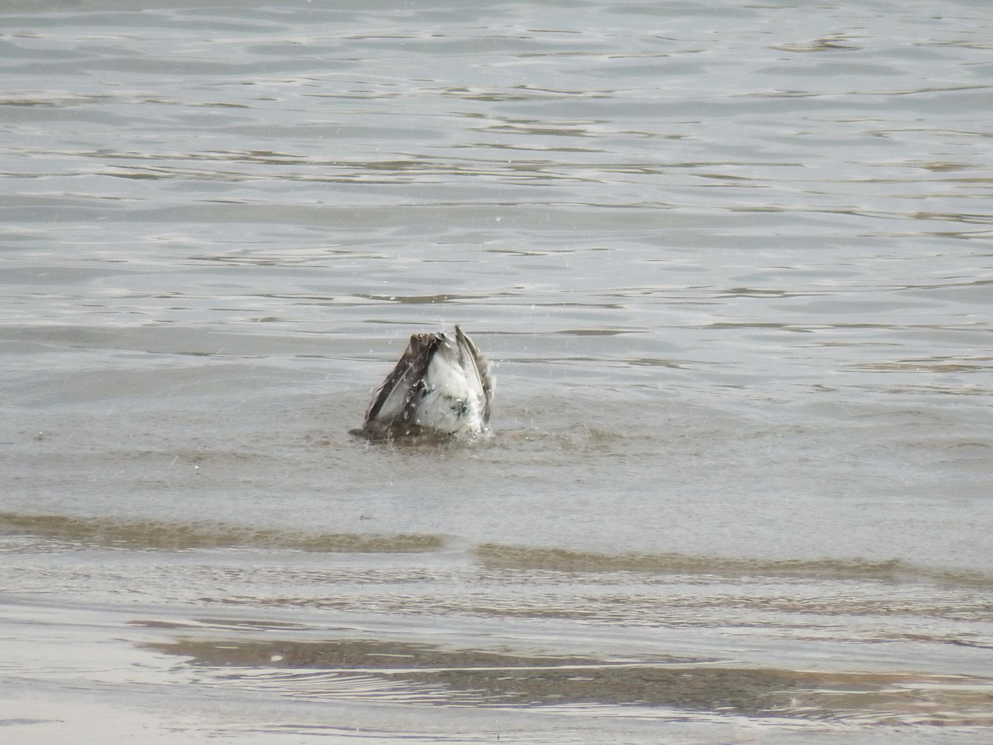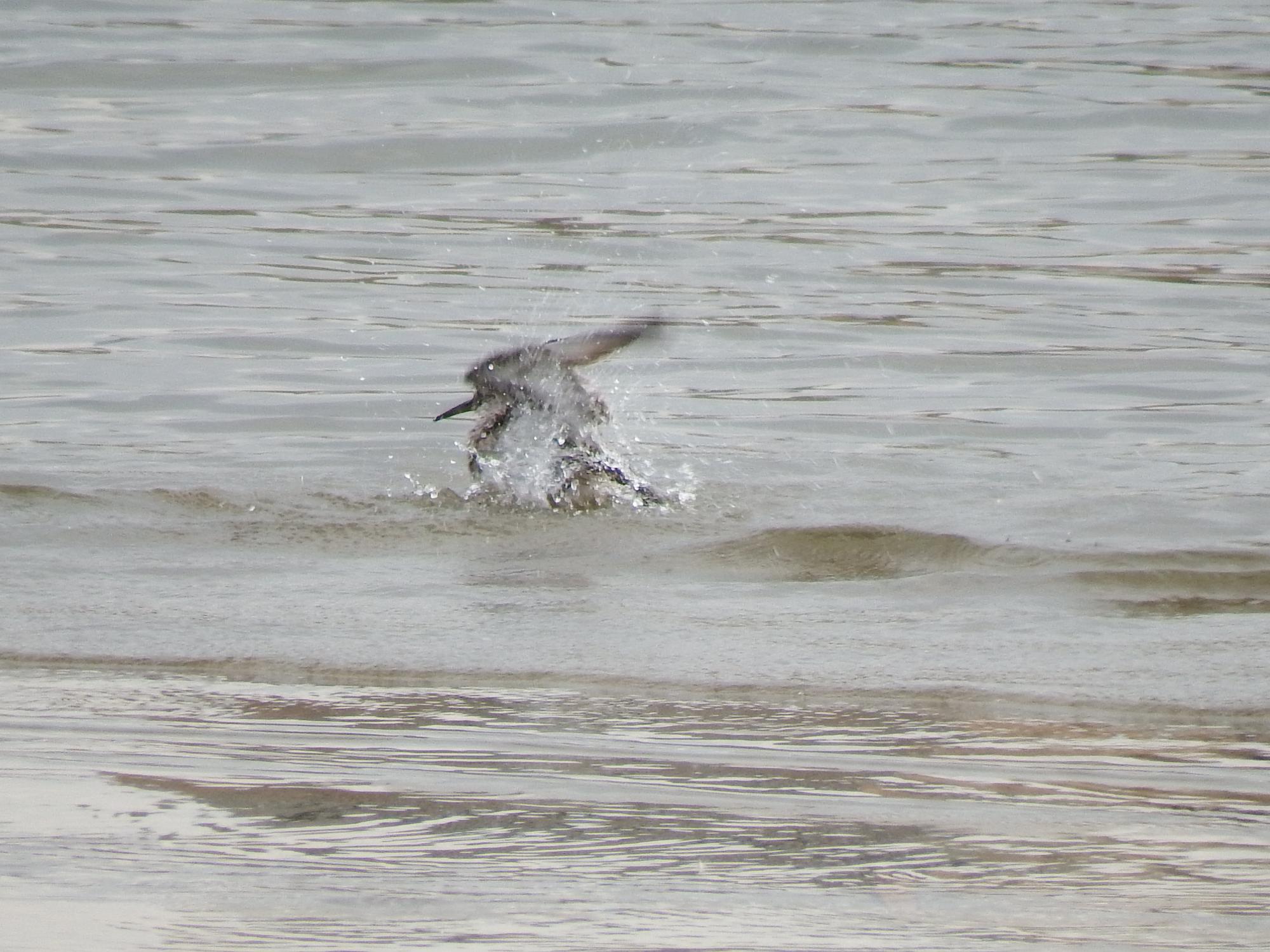 オバシギの方はお腹がいっぱいになったので水浴びを始めました。