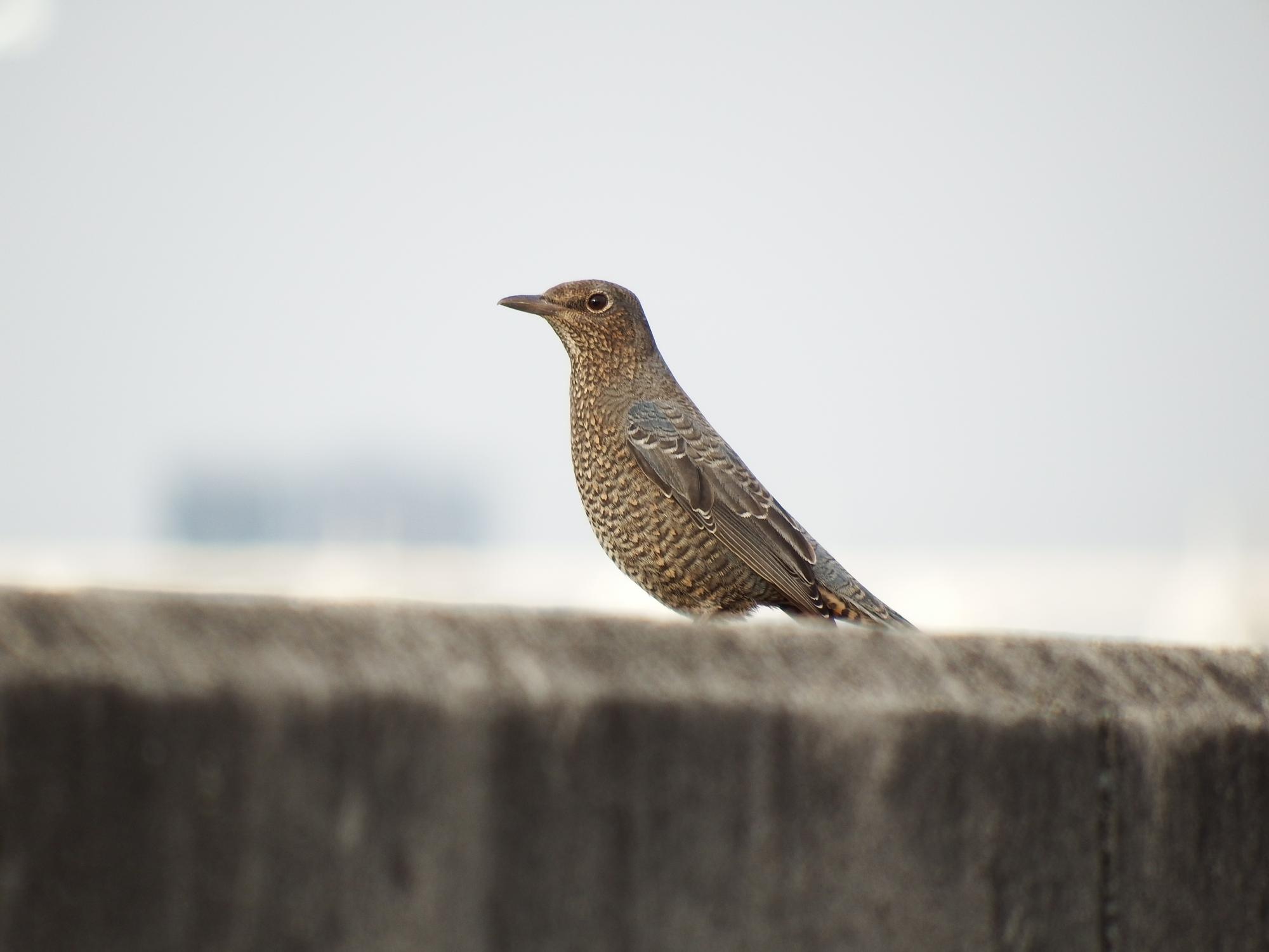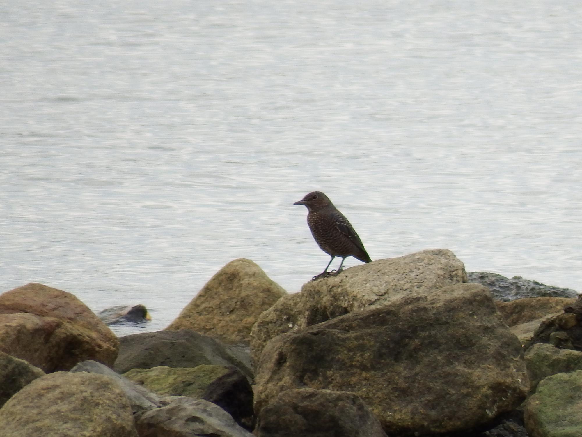 西陽に輝くイソヒヨドリ♀。