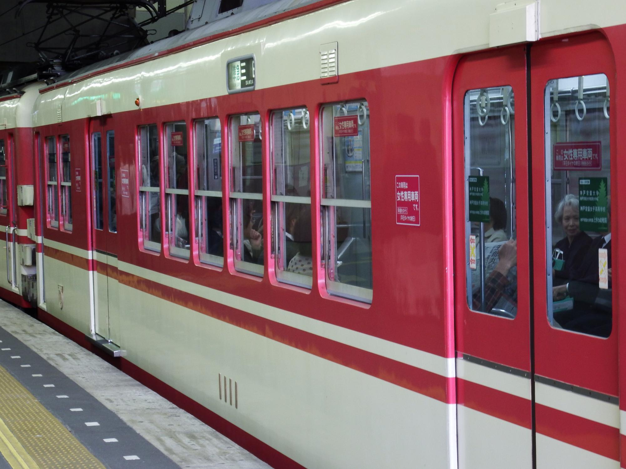 鈴蘭台で日中毎時40分の同時発車、乗って行くつもりだった右側の三田行を見送って撮影。