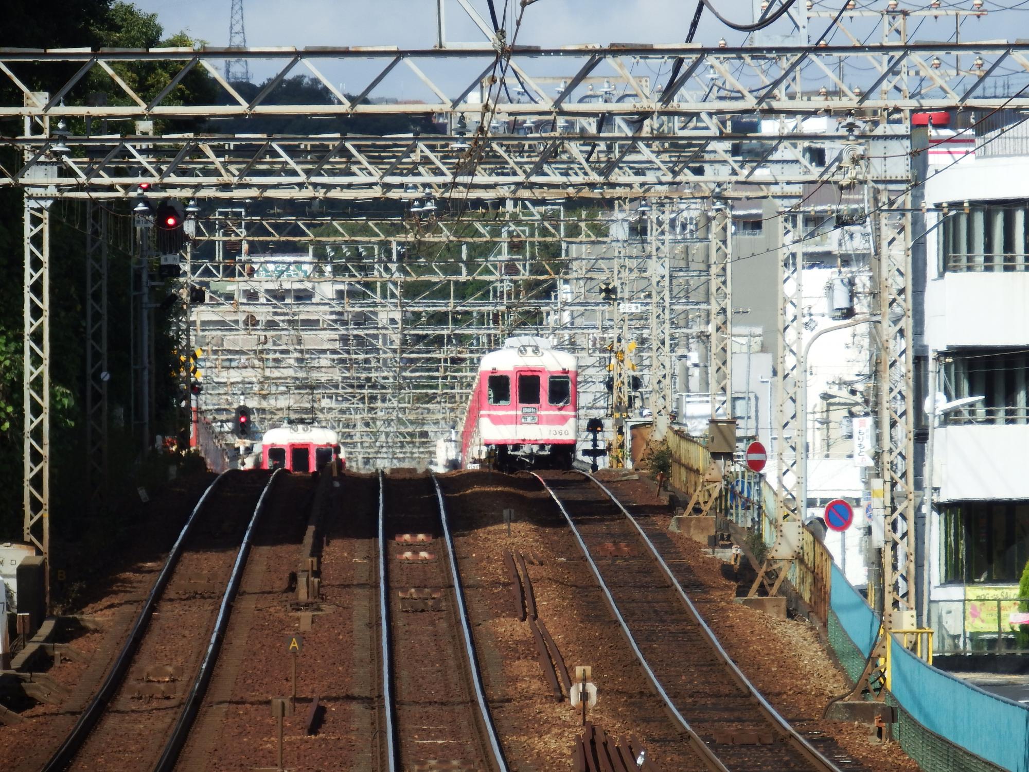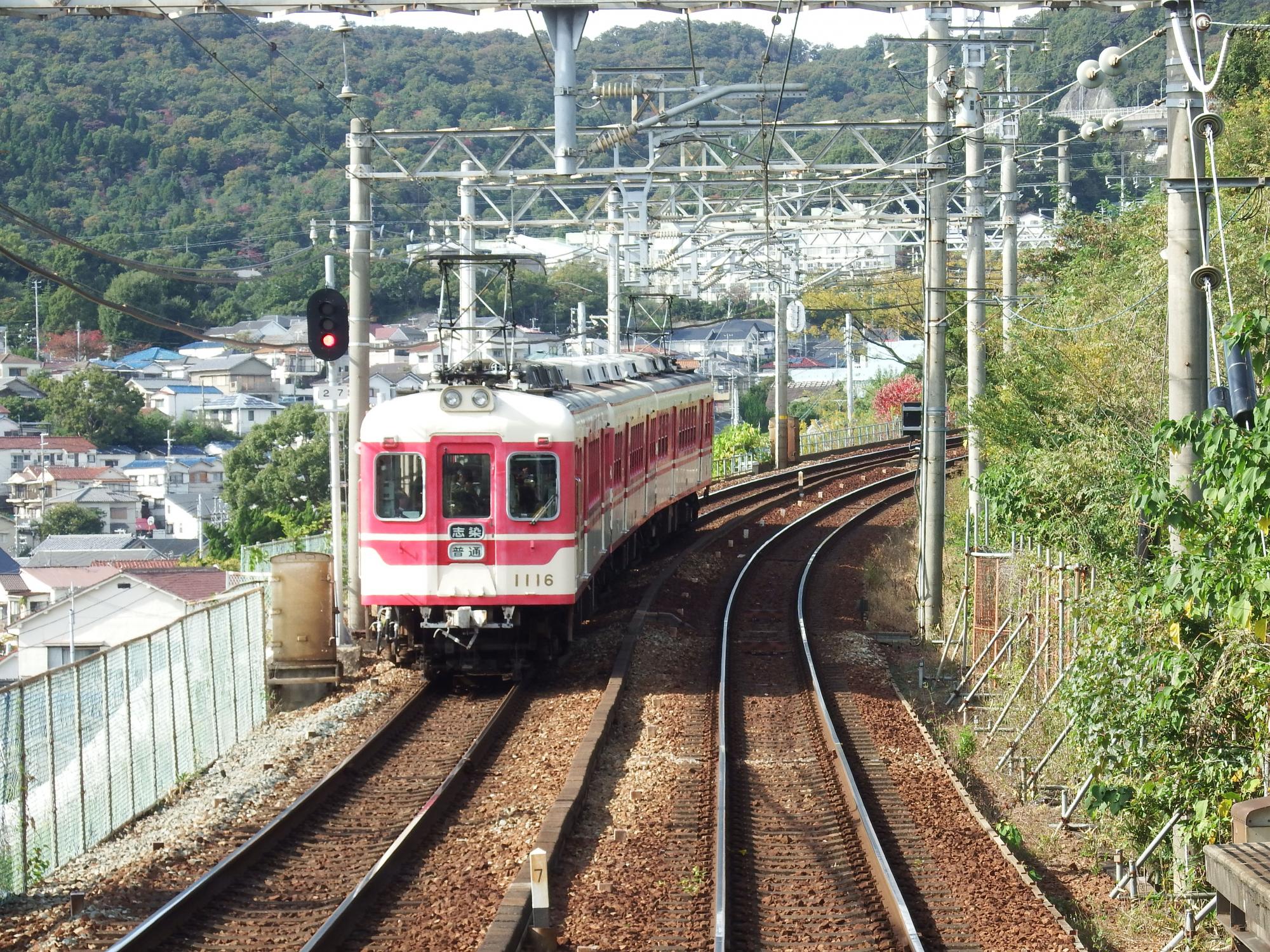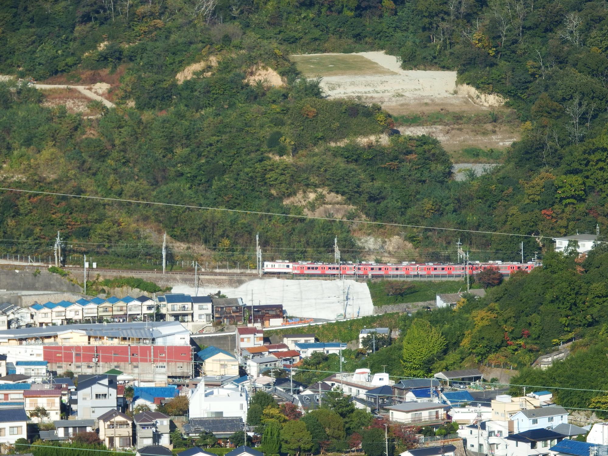 もう少し登ってみると、Wow、神鉄がばっちり!丸山駅北側の新開地行と、丸山駅南側の鈴蘭台方面行。