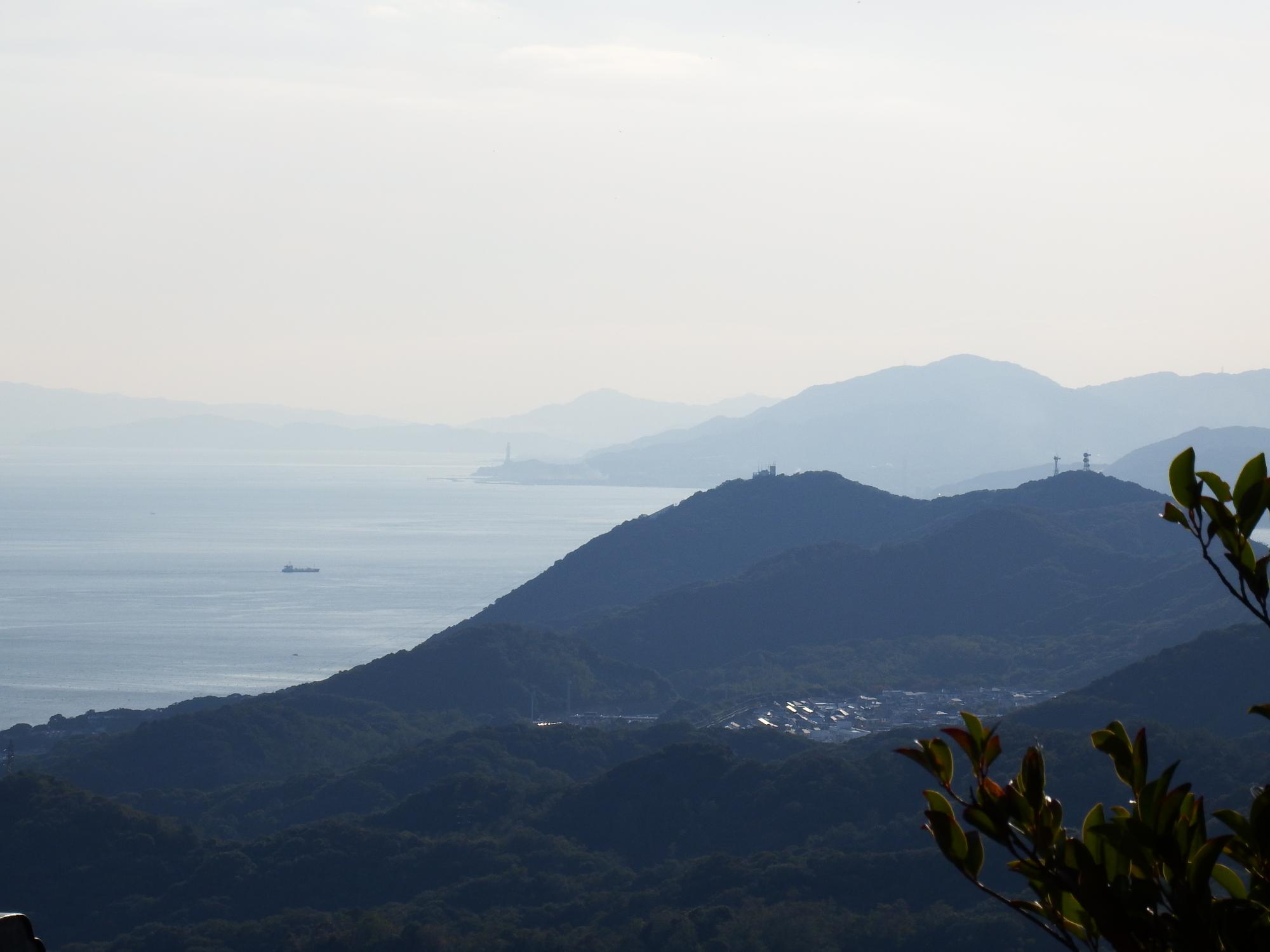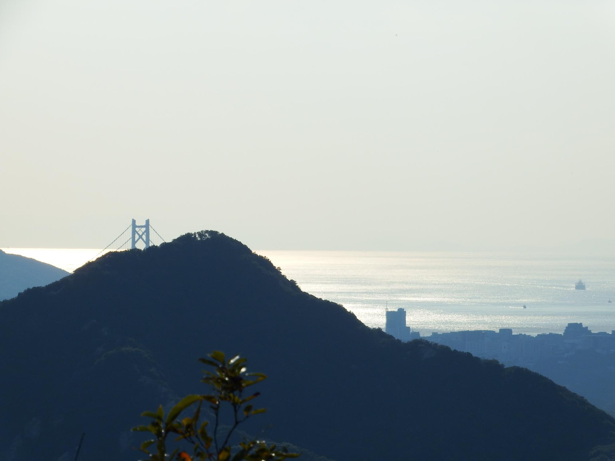 山頂付近から西側も少し見えました。明石大橋もチラリ、大阪湾とは異なる瀬戸内海の風情です。