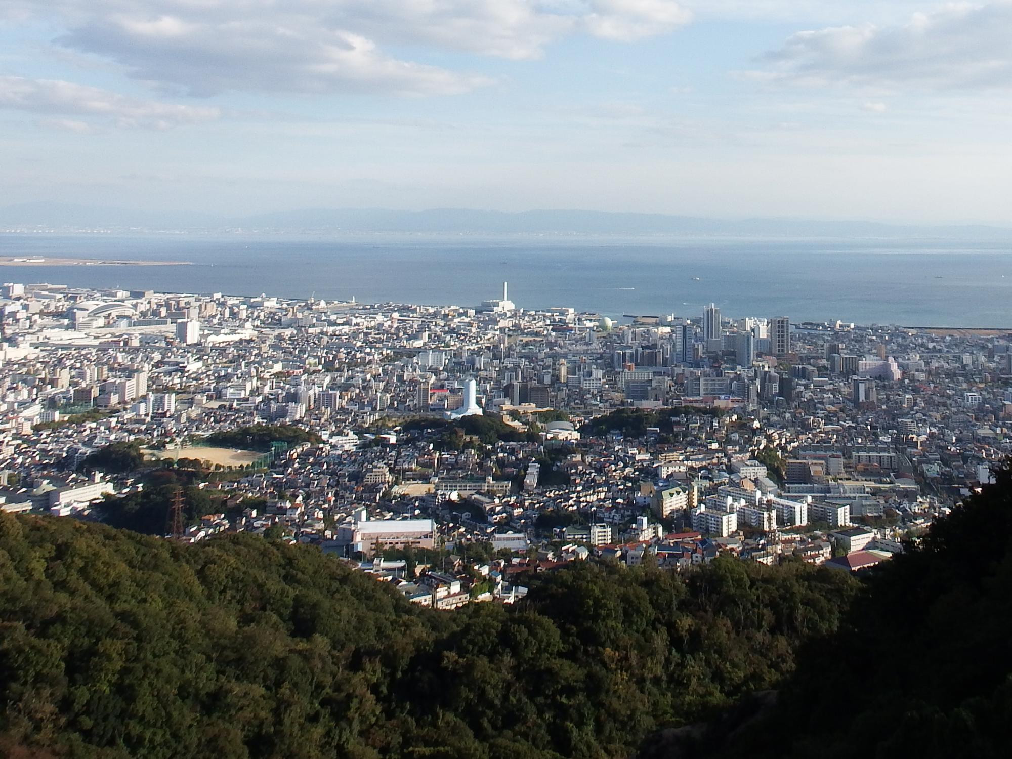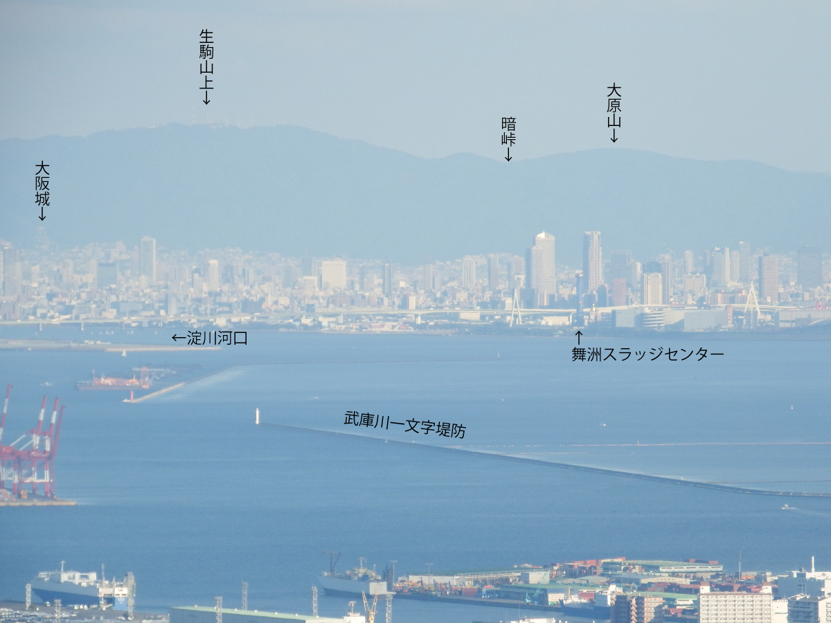 自分ちと生駒連山の大原山を結ぶ線分をまっすぐ西に伸ばすと大阪湾の向こう、神戸の高取山に届くことを、大原山から枚岡駅へ下りる途中の見晴らしのいい場所から確認しています。天気が良いだけでなく、空気が澄んでいる日を待って、高取山へ登ってきました。