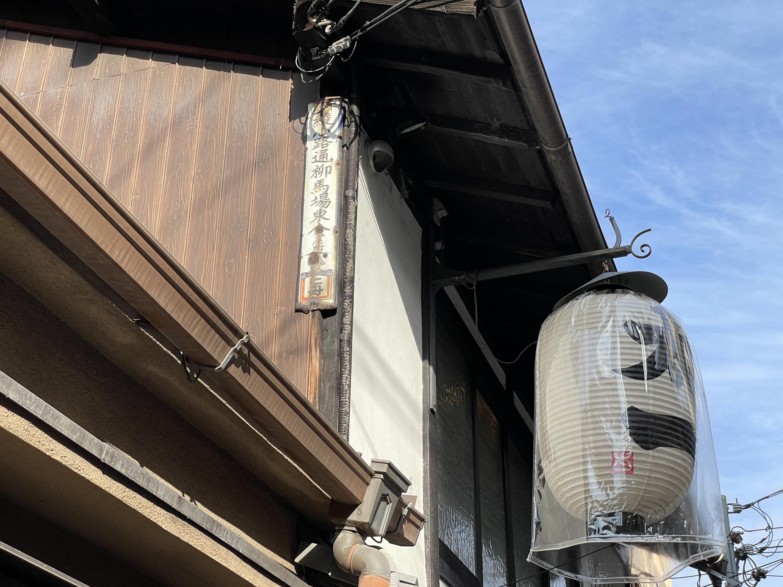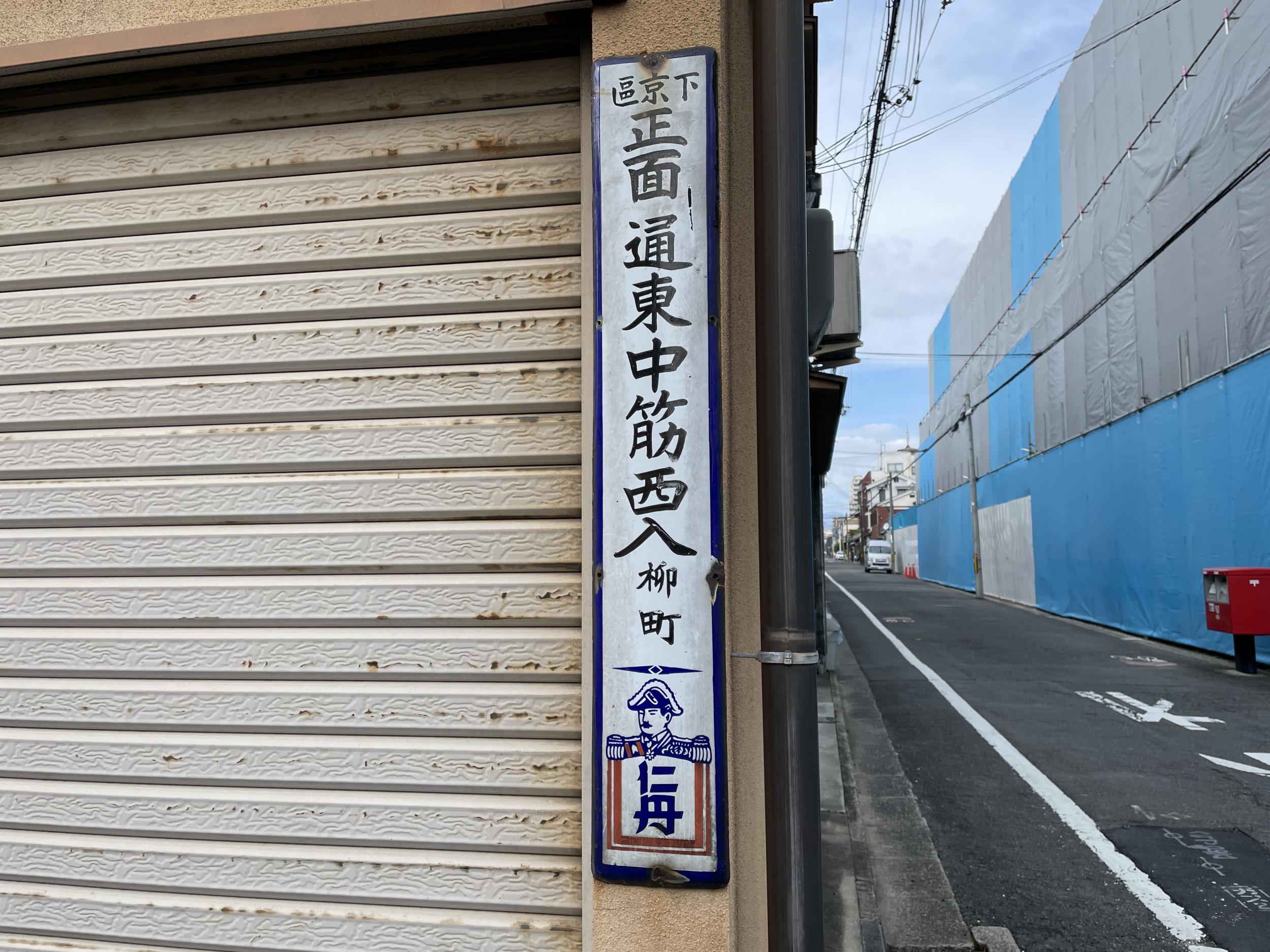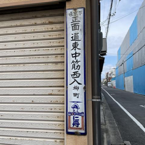 正面通東中筋西入柳町町名看板