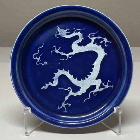 瑠璃地白花龍文盤