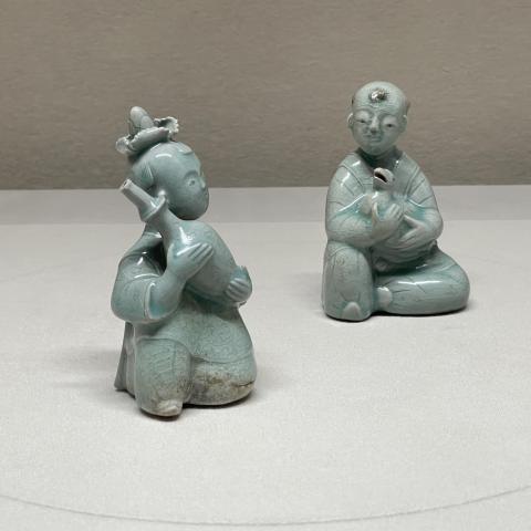 青磁彫刻童女形水滴と童子形水滴