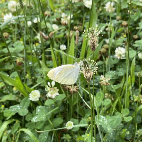 ヘラオオバコにモンシロチョウ