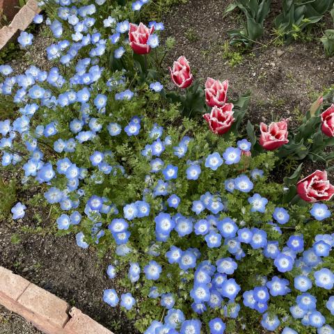 ネモフィラとチューリップ