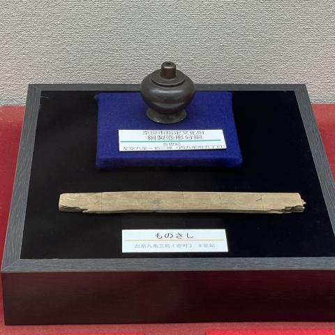 銅製壺型分銅と物指