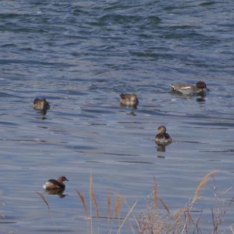 コガモとカイツブリ