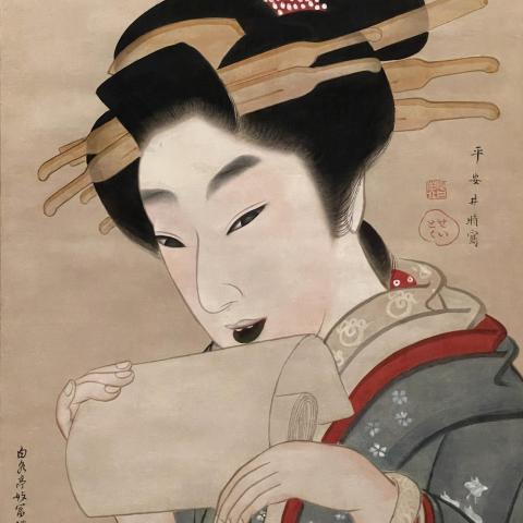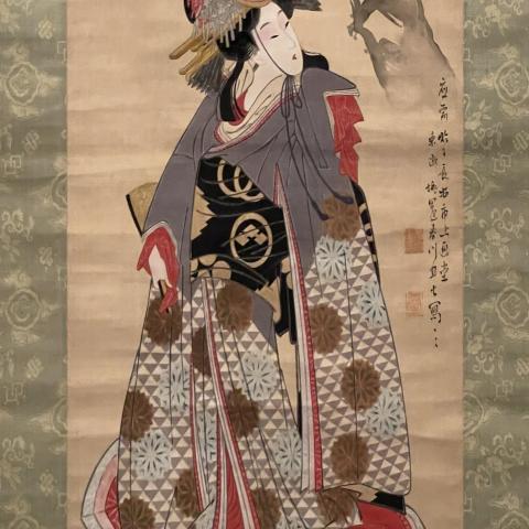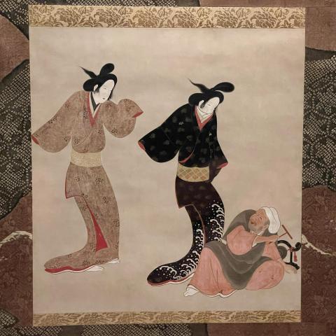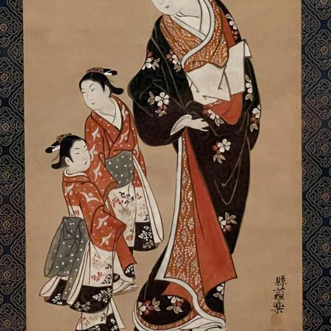宮川一笑 花魁と禿図